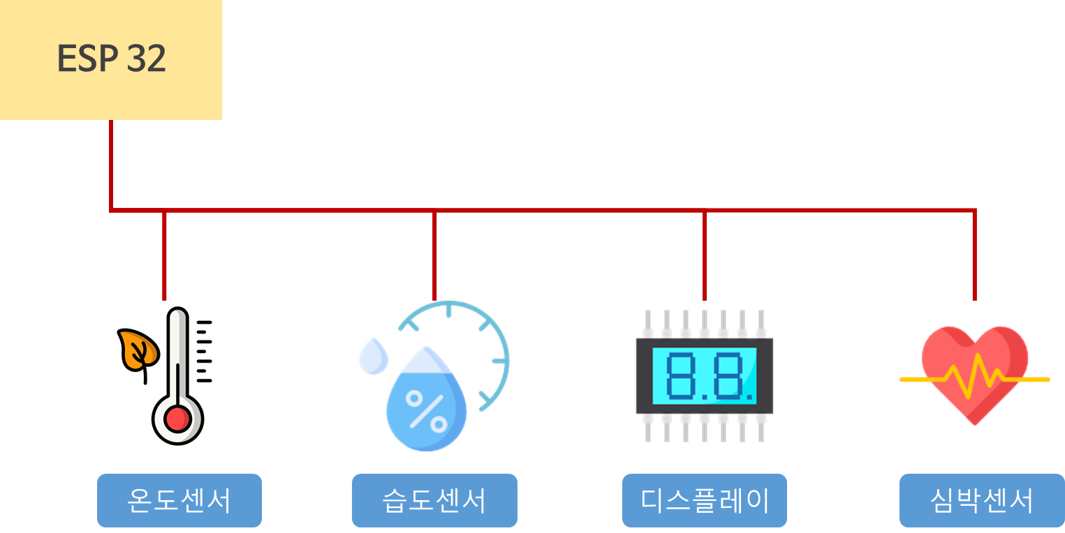 만일 I2C통신이 아니라면 온도센서는 GPIO10 / 습도는 GPIO12 / 디스플레이는 13번 등등.. 센서의 갯수만큼 GPIO핀에 연결이 되어야겠죠?