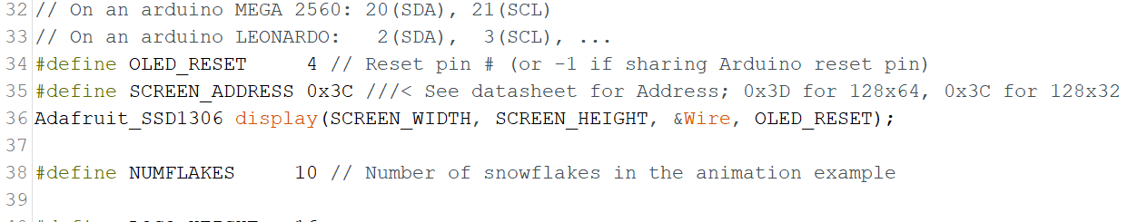 ▶ 예제코드를 그대로 업로드하기 전에 I2C의 경우에는 주소 값을 정확히 알아야합니다. EasyConnector OLED의 Address 값은 0x3C이므로 기존의 0x3D를 0x3C로 변경해주세요.