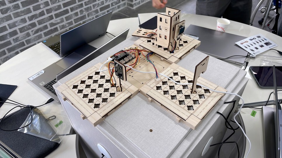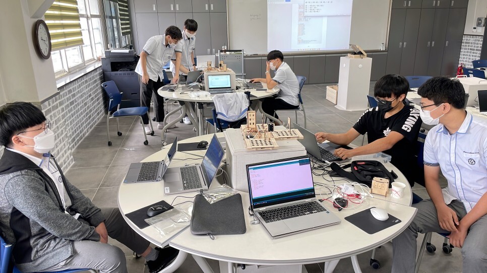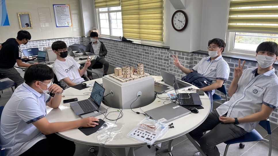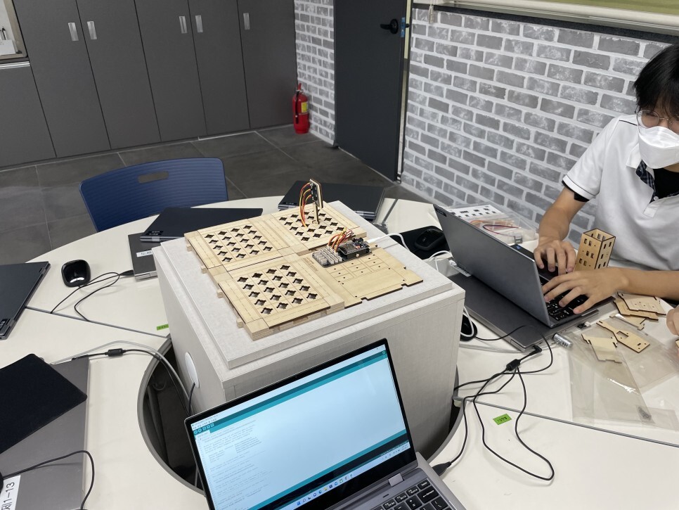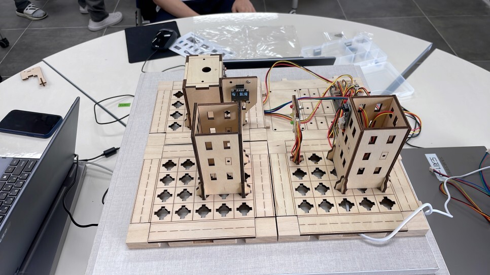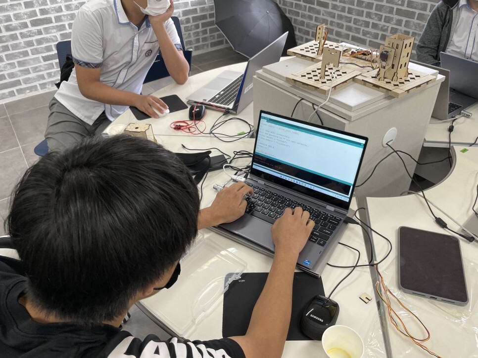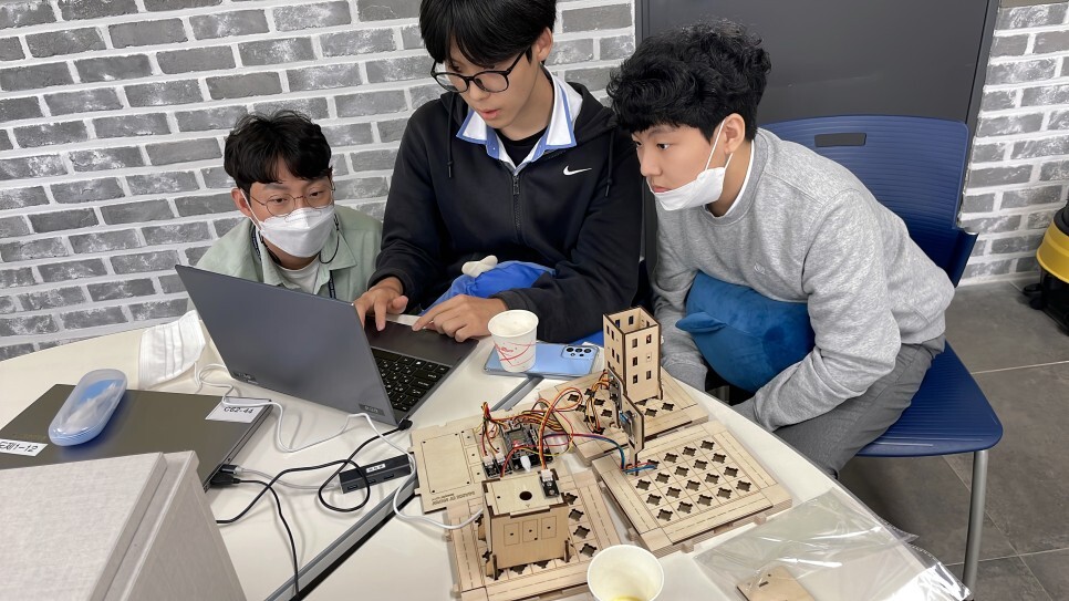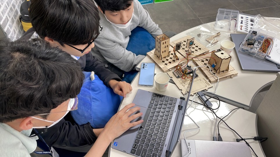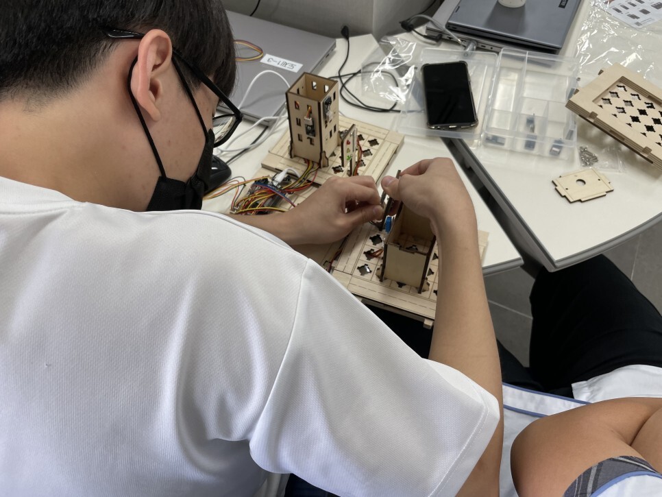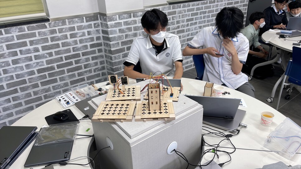 학생들이 직접 스마트시티 키트를 조립하고 다양한 센서들을 이용하여