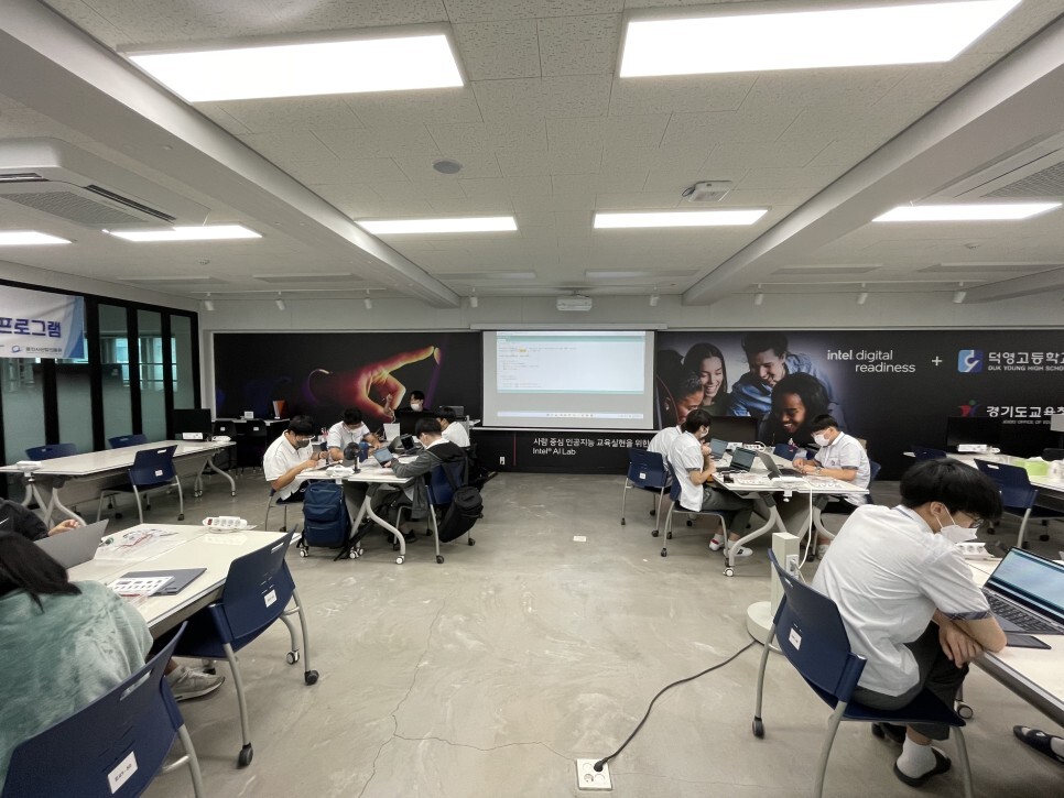덕영고등학교는 학생들을 조별로 나누어 앉을 수 있는 환경이 되었어요.