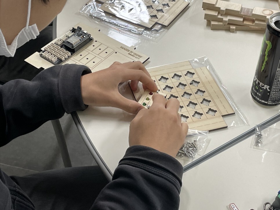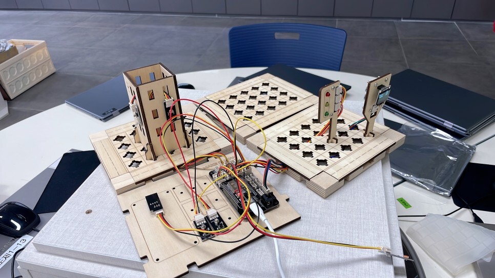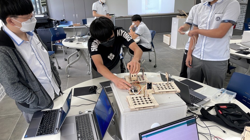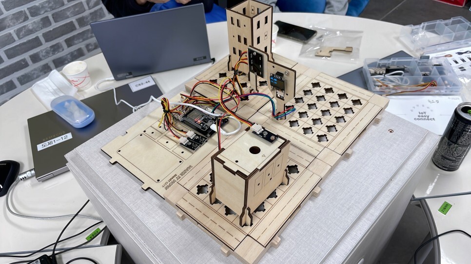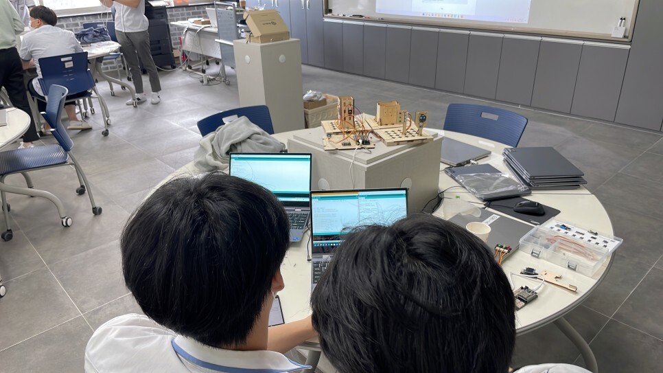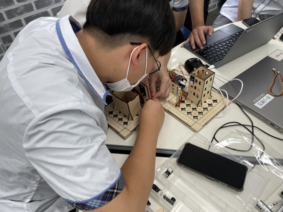 학생들이 직접 스마트시티 키트를 조립하고 다양한 센서들을 이용하여