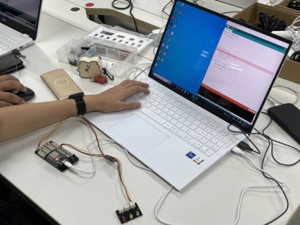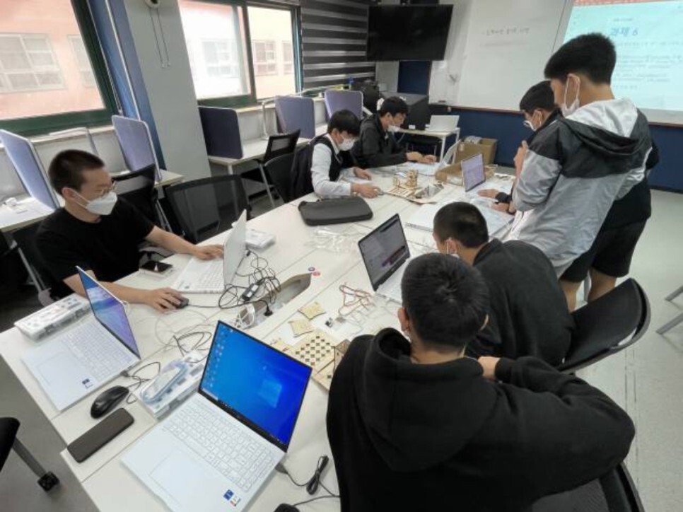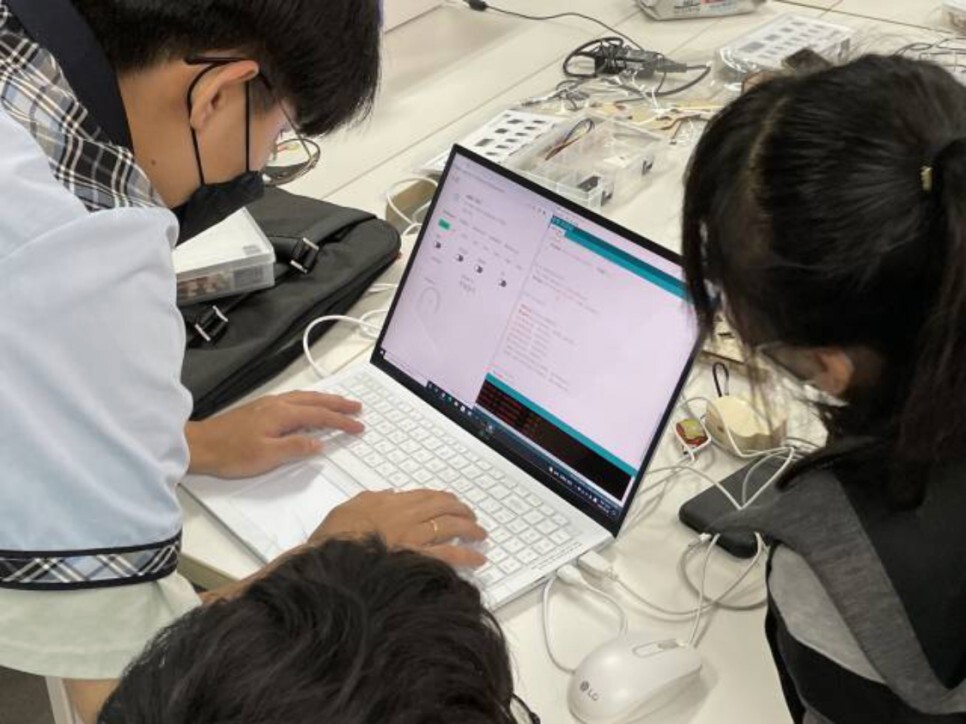 학생들이 직접 스마트시티 키트를 조립하고 다양한 센서들을 이용하여