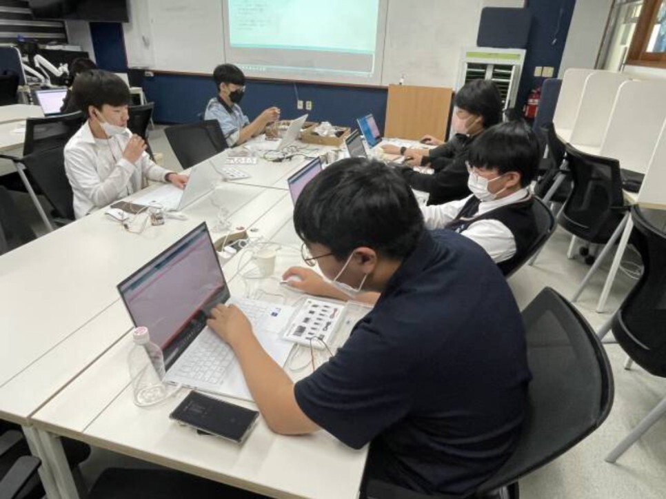 학생들이 직접 스마트시티 키트를 조립하고 다양한 센서들을 이용하여