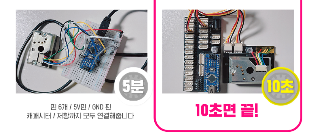 저희 센서와 보드들을 활용하시면 학생들이 선연결문제로 보드가 망가지거나, 센서가 고장나는 일은 없습니다 :)