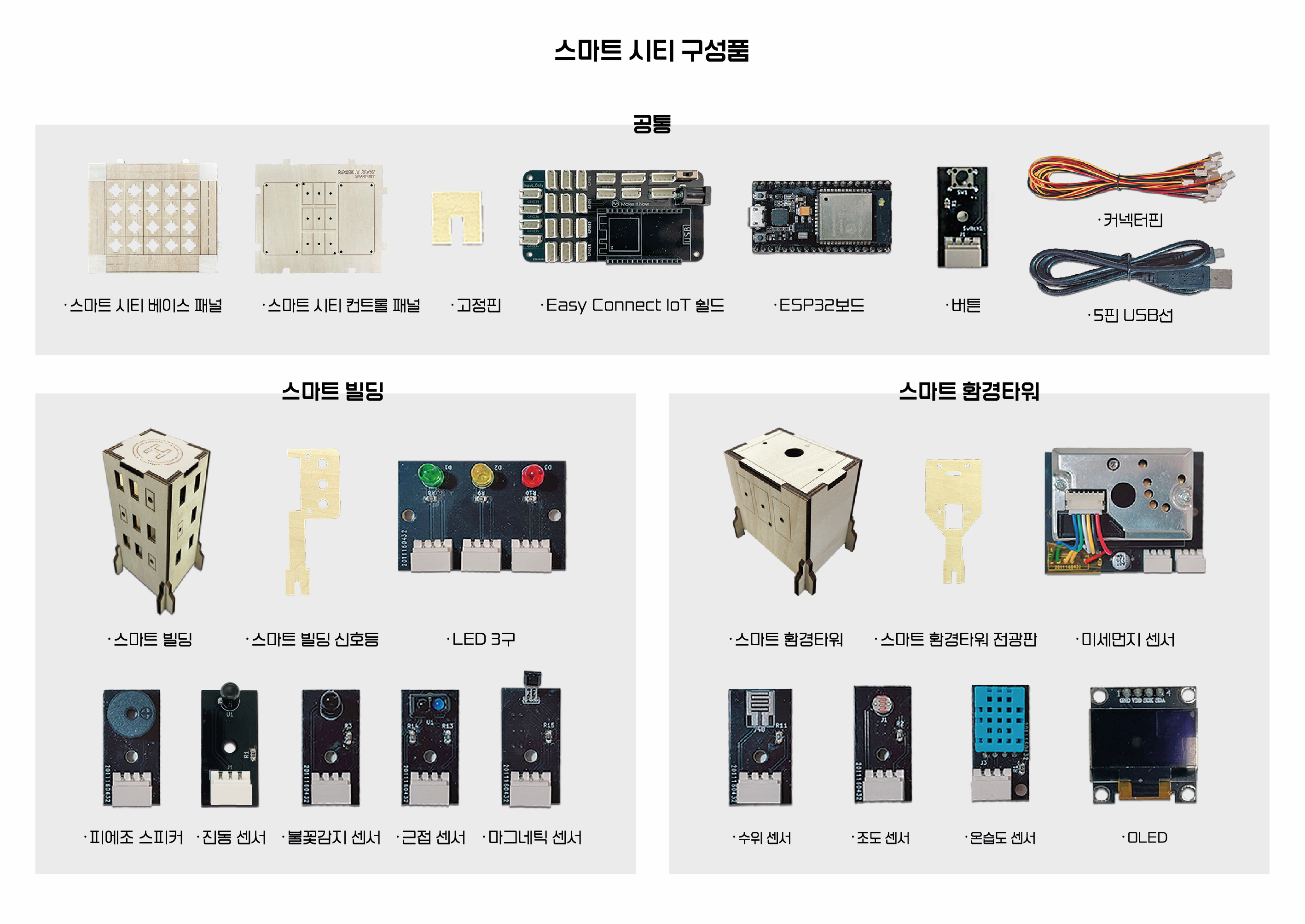 저희 교육 키트로 학생들이 쉽고 효율적으로 IoT 스마트시티 분야의 개념과 기술을 이해할 수 있도록 준비했습니다 :)