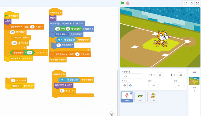 블럭코딩은 간단한게 만들어져 있는 블럭들을 이어붙여 동작하는 함수를 만들어 내는 것입니다.