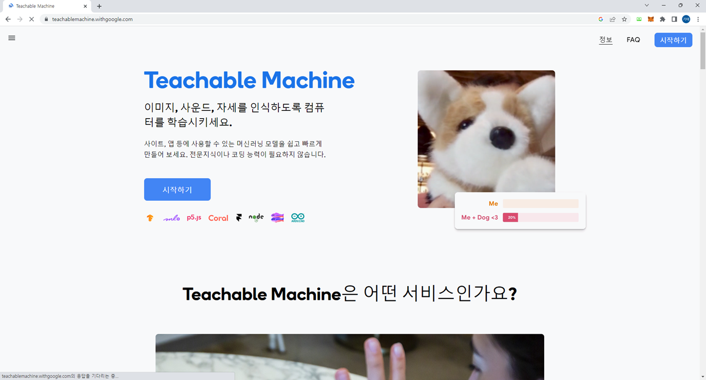 티처블머신은 이미지나 사운드 자세등을 학습시키고, 그 데이터를 기반으로 결과값을 나타내주는