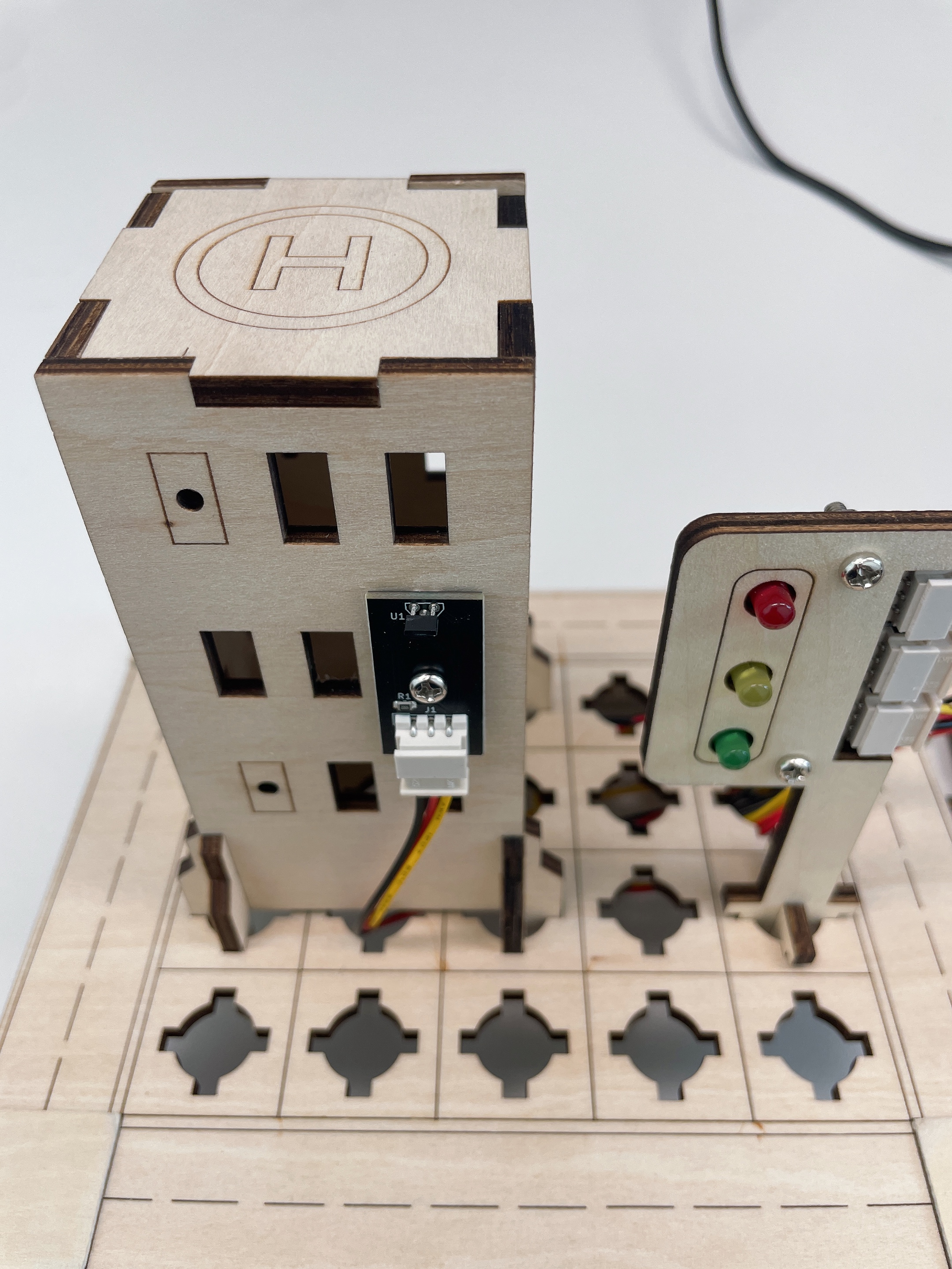 마그네틱 센서를 귀여운 스마트빌딩 조립키트에 조립해 주었어요. 그리고 오늘도 신호등키트가 감지 여부를 더욱