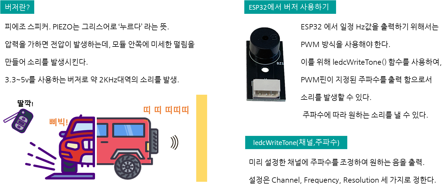 이 가운데 오늘은 버저(피에조스피커) 를 활용하여 알림음을 발생시켜 보도록 하겠습니다.