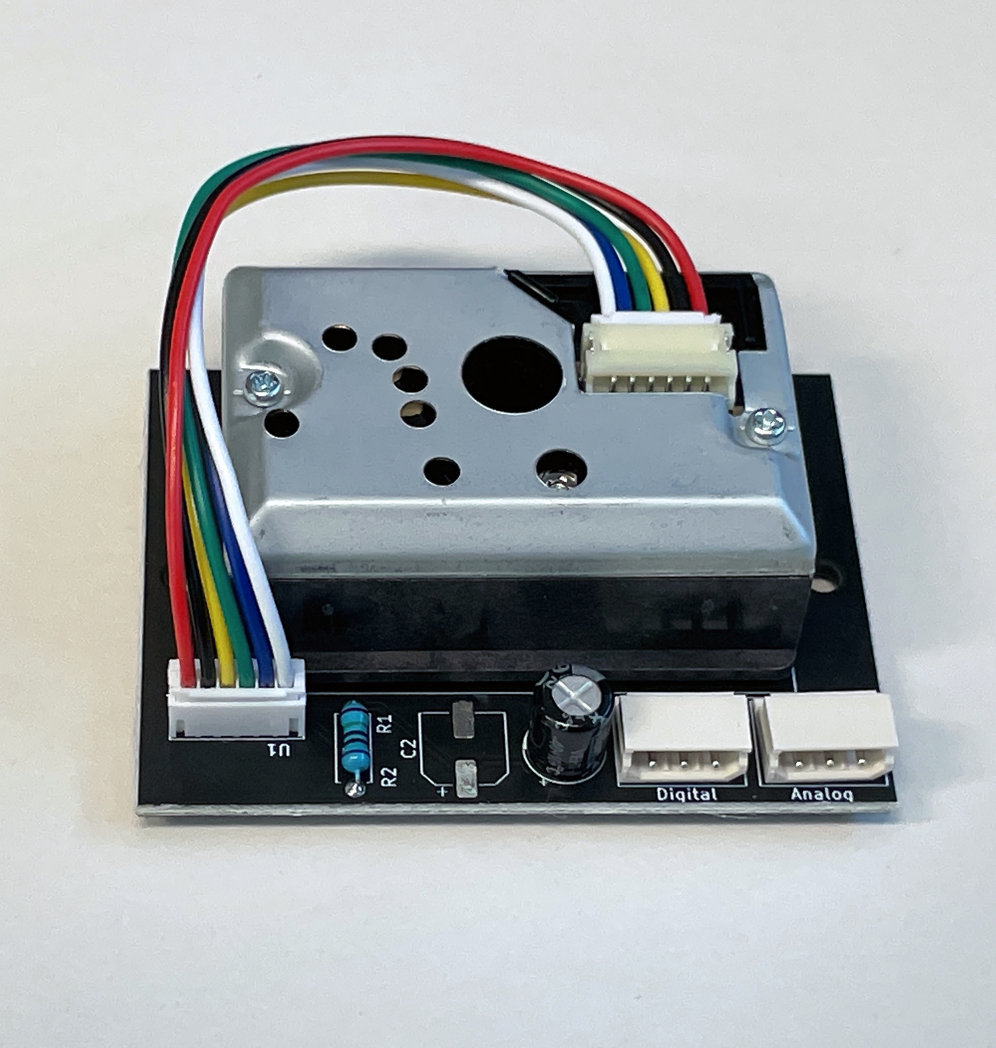 미세먼지 센서는 가운데 홀을 통해 공기중 미세먼지 양을 측정하는 센서이다. 디지털과 아날로그 핀이 모두 사용되며,