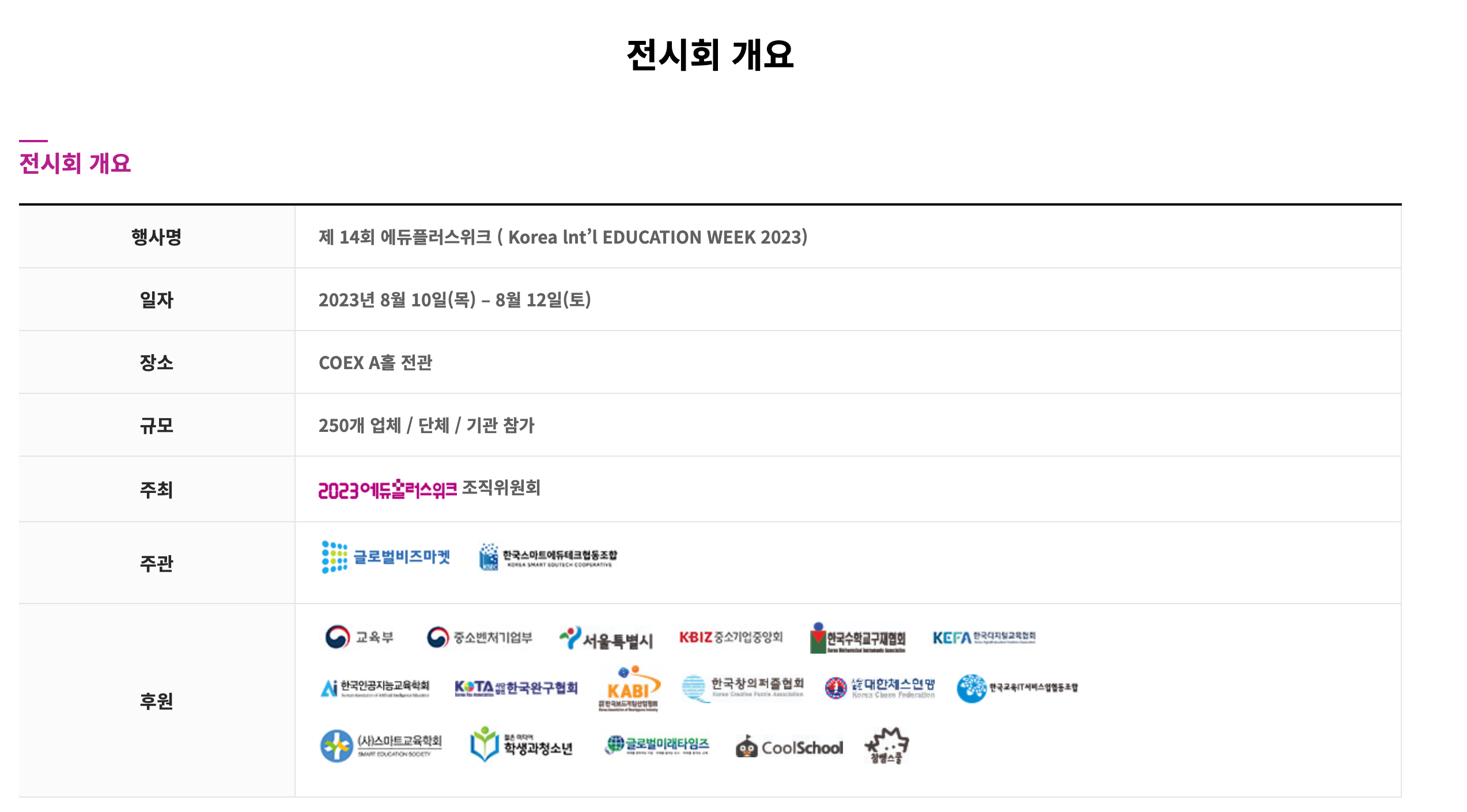 에듀플러스위크 2023. 8. 10(목) – 12(토) 코엑스 A홀 전관