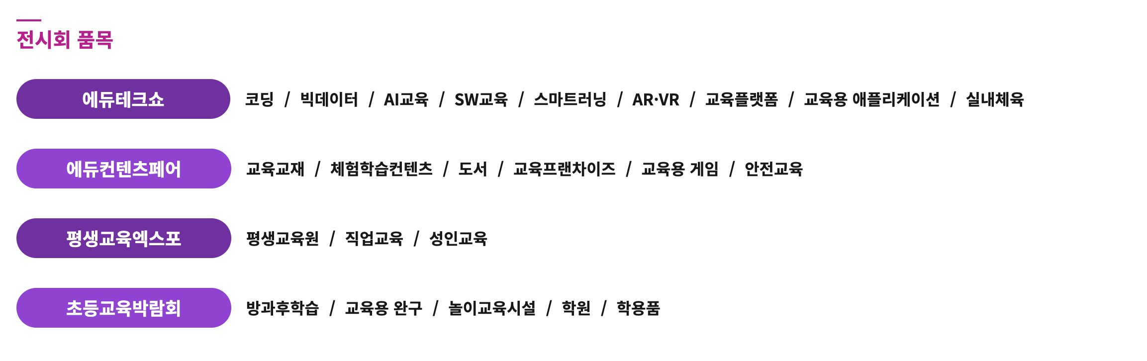 전시회 품목
