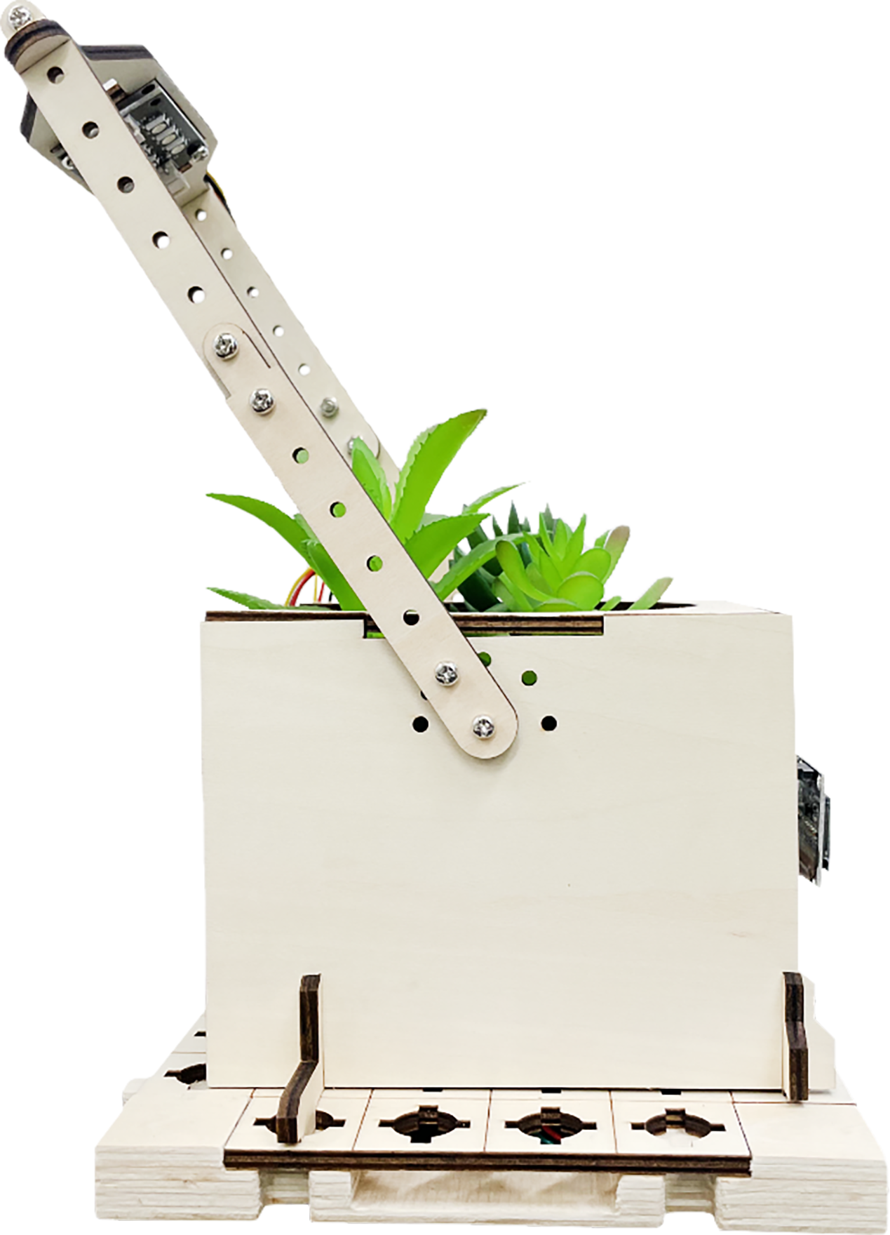 메이크잇나우 스마트팜 키트에서는 식물이 빛을 가장 잘 받도록 상단에 위치하고 있으며, 식물의 성장을 방해하지 않도록