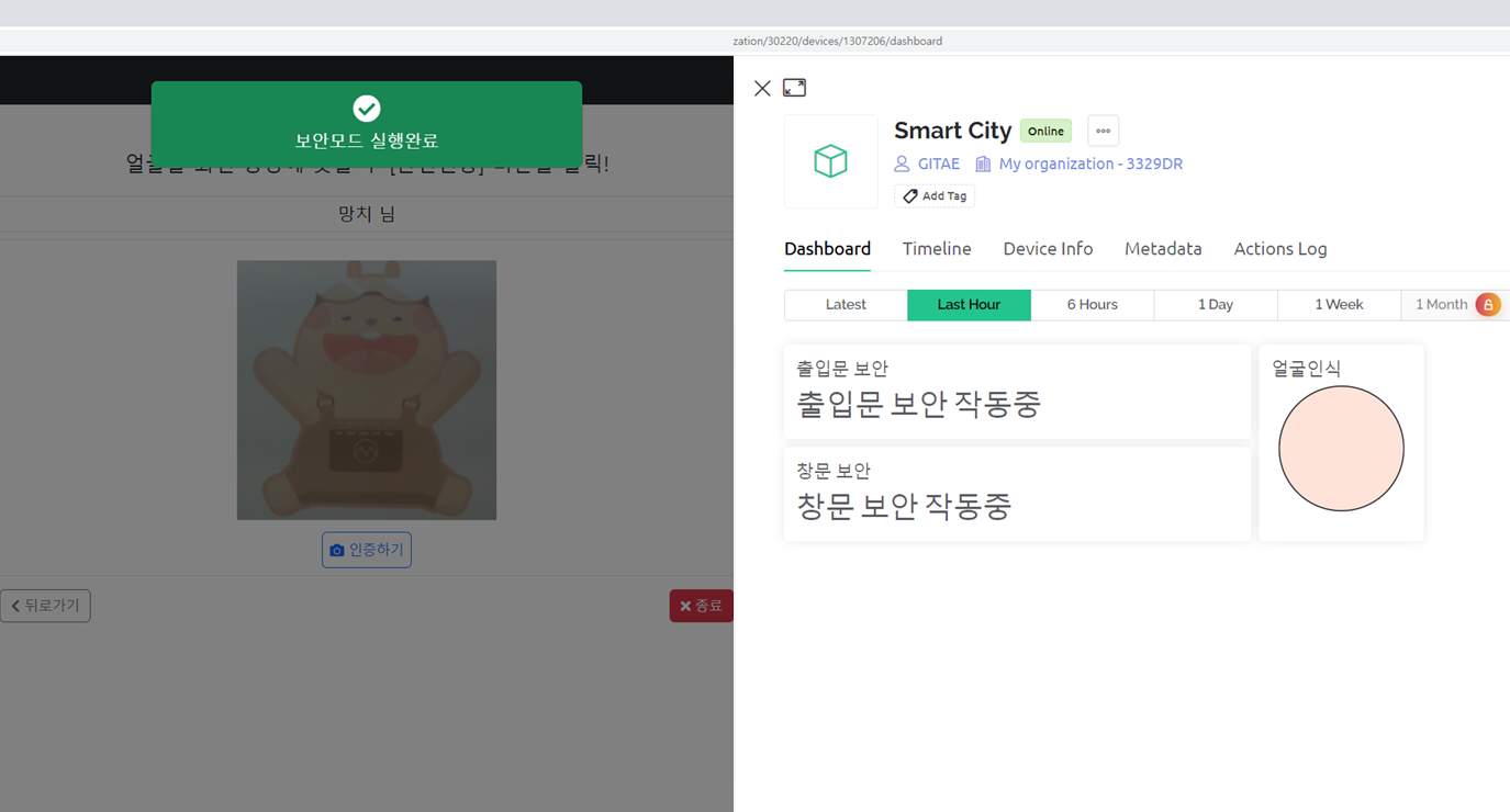 망치가 관리자 얼굴인식을 통해 시스템 제어의 권한을 얻었어요!! 이제 보안모드를 실행하거나 해제할 수 있습니다.