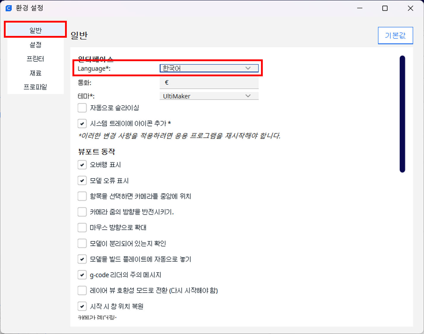 ■ CURA 한국어 설정하기