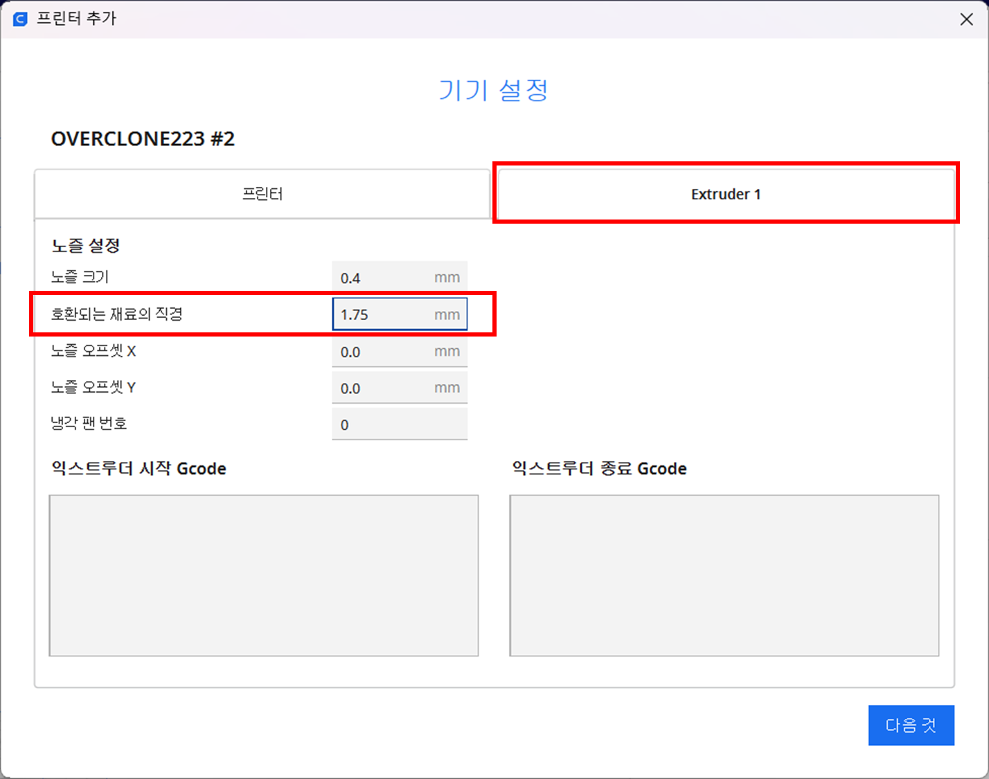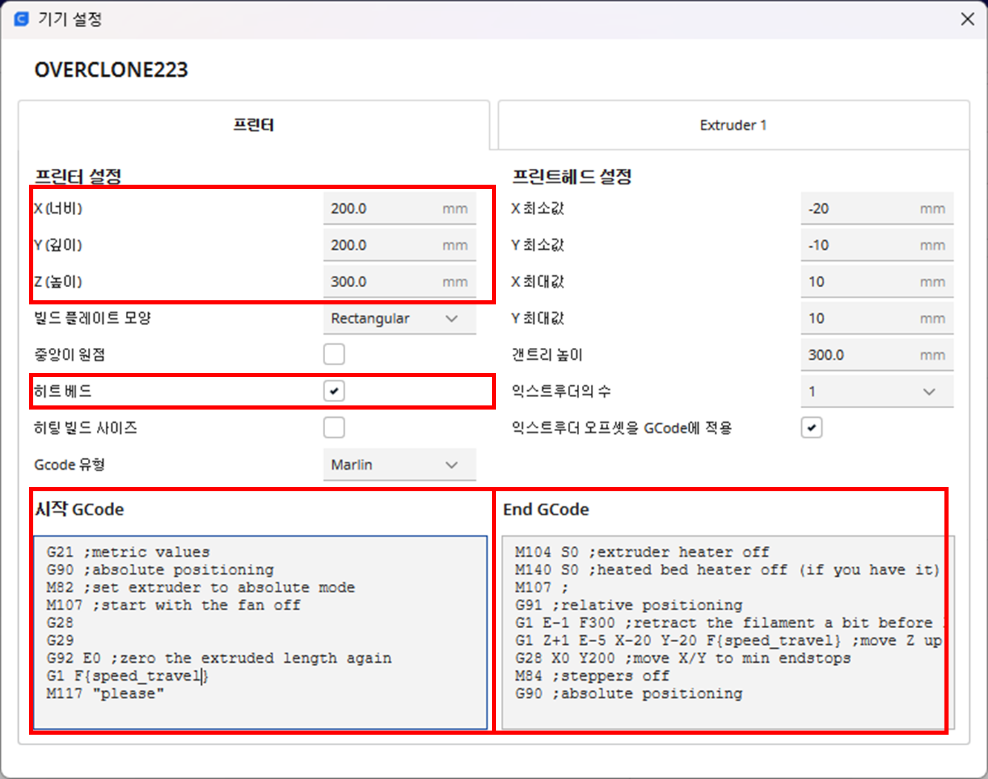 | 시작GCode | End GCode |