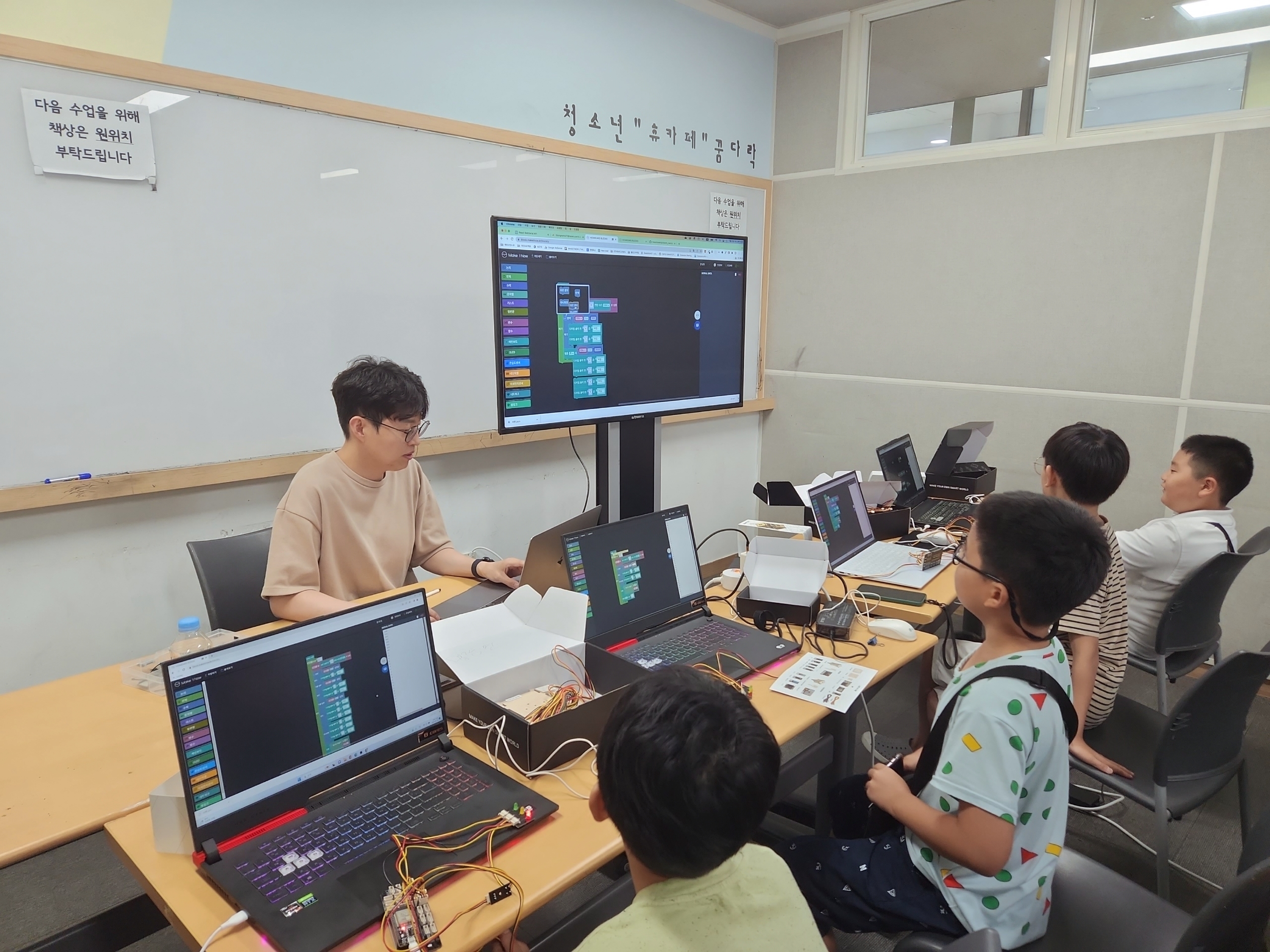 우선, 성동청소년센터에는 여러 분야에 대해서 다양한 체험, 교육, 축제를 진행하고 있었는데요. 그 중에서도 ICT 관련 부분에 더욱 집중해서 청소년들의 역량을 강화하는 교육을 진행하고 있었습니다.