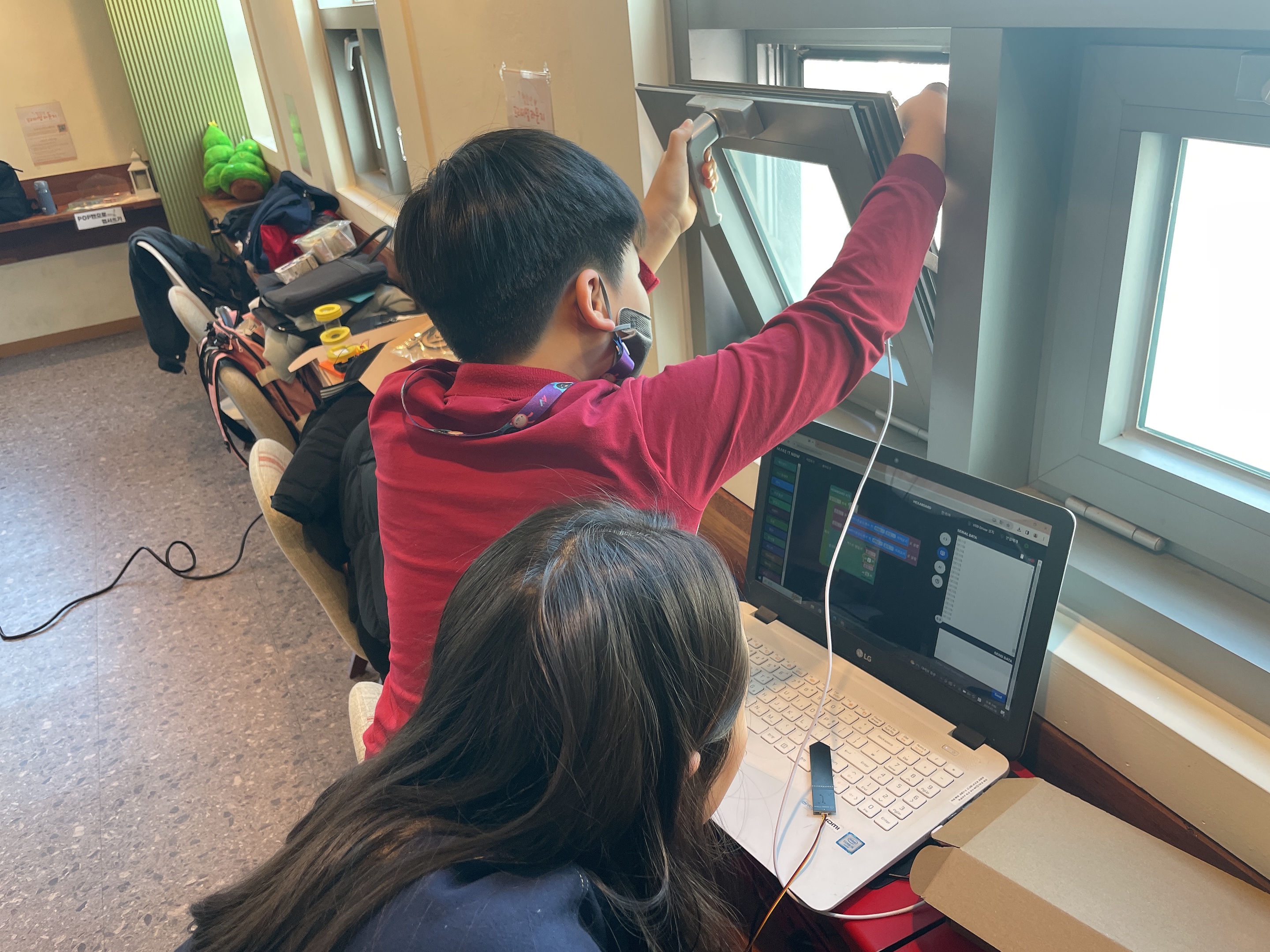 창문을 열고 밖의 온도도 확인해보는 친구들이예요