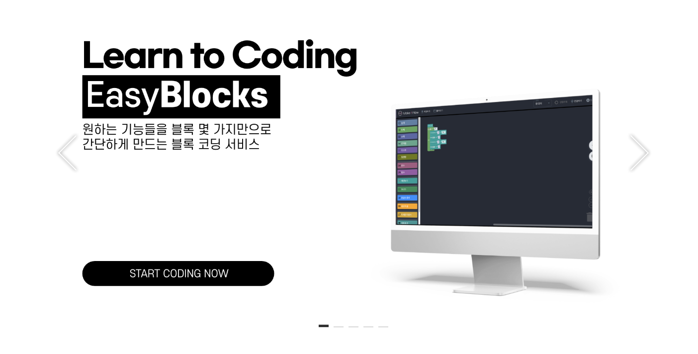 메이크잇나우 홈페이지에서는 다운로드 없이 '이지블록스' 프로그램을 사용할 수 있도록 제공하고 있습니다.
