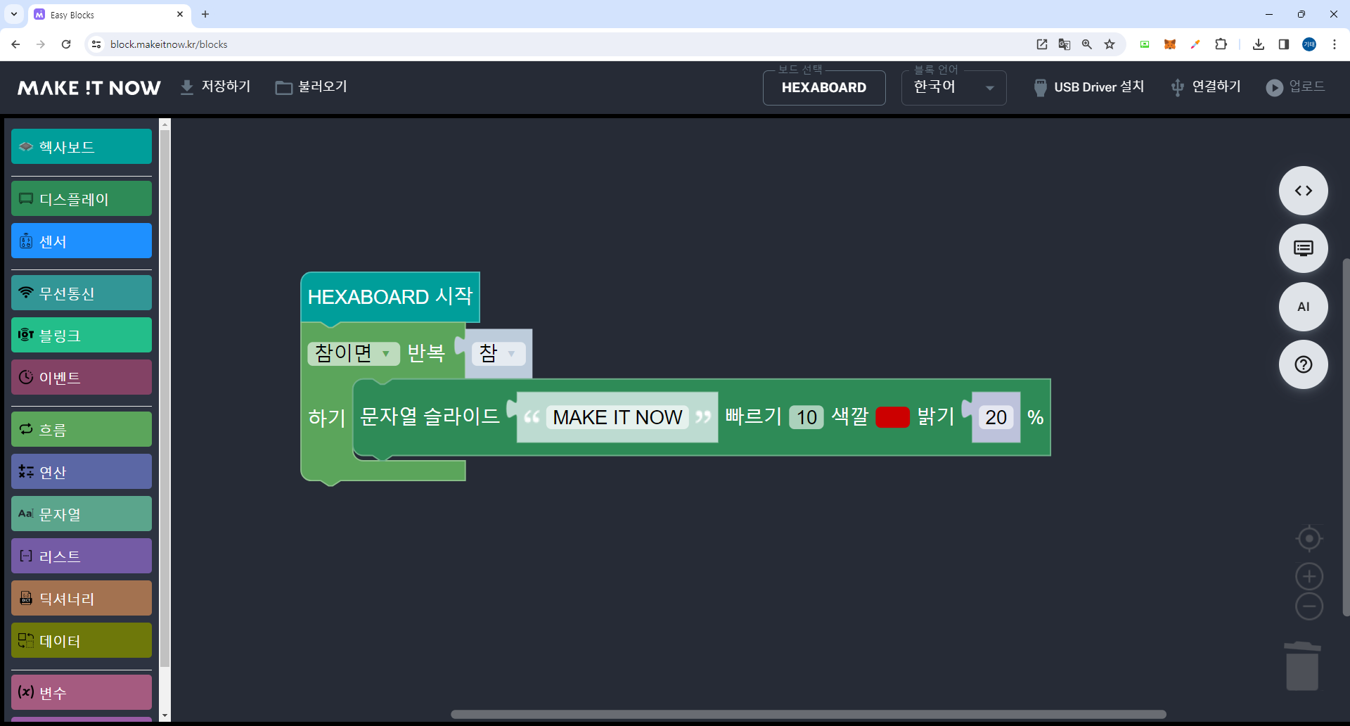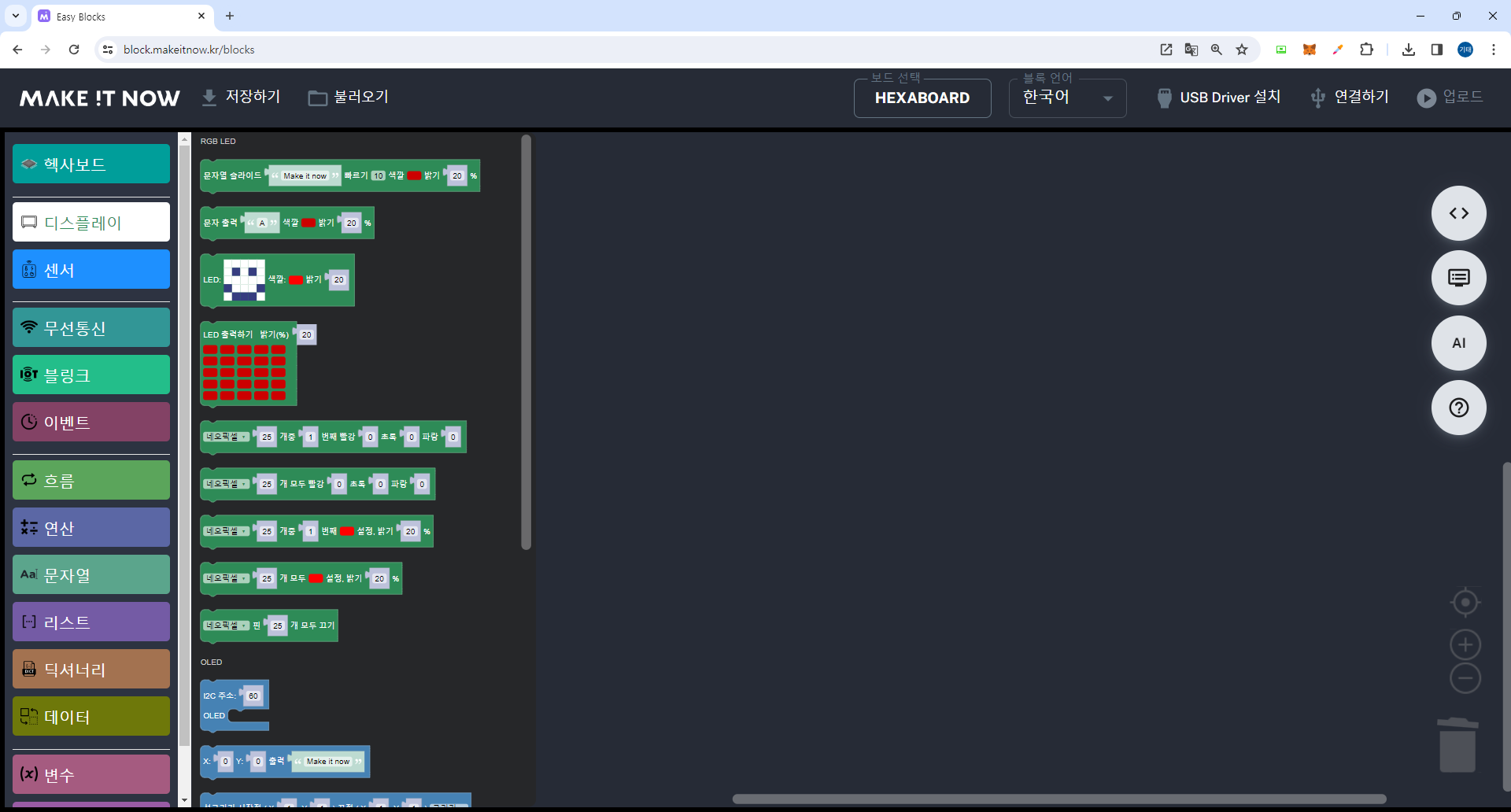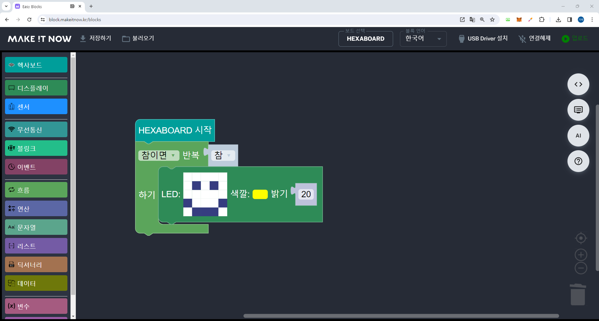 이지블록스 프로그램을 활용하면, 더욱 손쉽게 헥사보드를 사용할 수 있습니다 :)