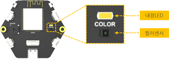 헥사보드에서는 컬러센서의 정확도를 높이기 위해 LED를 함께 사용하여 값을 측정합니다.