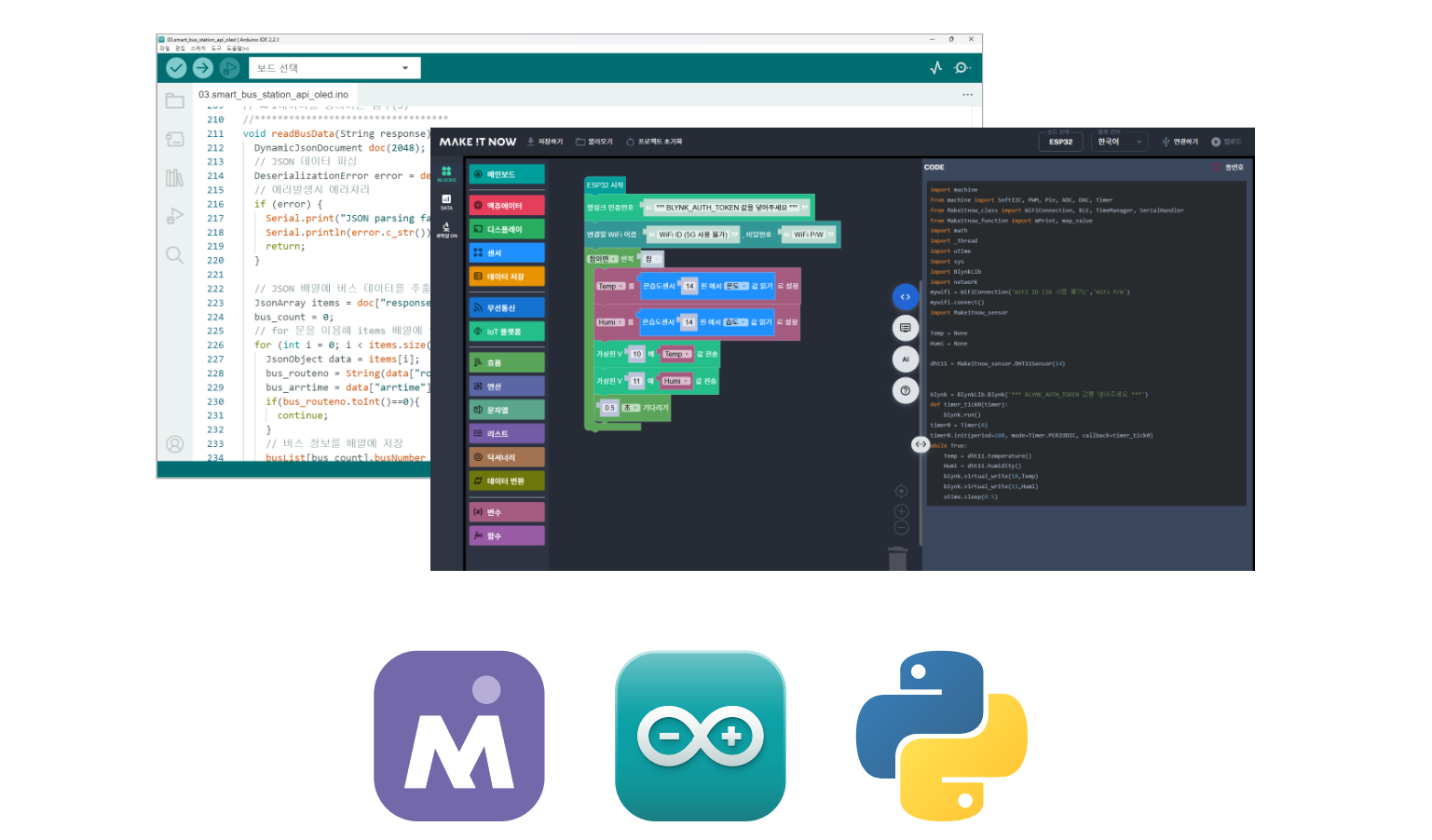 블록코딩부터 아두이노, 파이썬 까지 다양한 프로그래밍 언어로 코딩 및 업로드가 가능합니다.