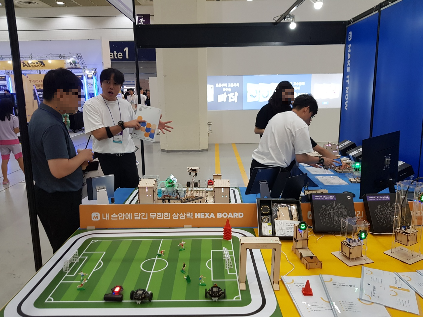 저희는 전시회의 모든 키트들을 직접 만지고 동작해 볼 수 있도록 전시를 하는데요, 테블릿을 통해 제어도 해보고 동작하는걸