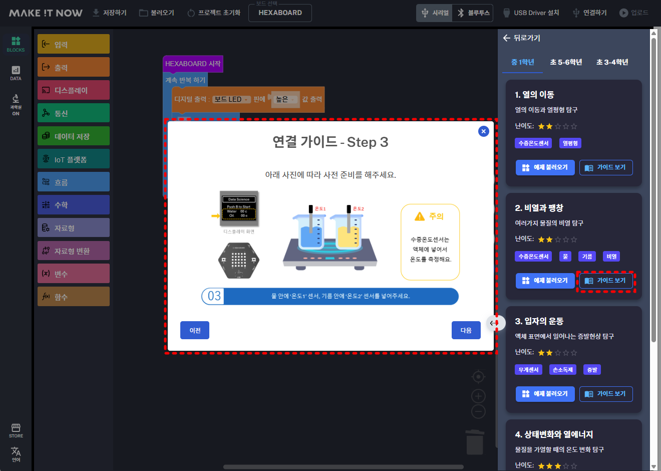 그리고 기존에 있던 프로젝트 예제 이외에 지능형 과학실 관련 예저들이 추가되었습니다.