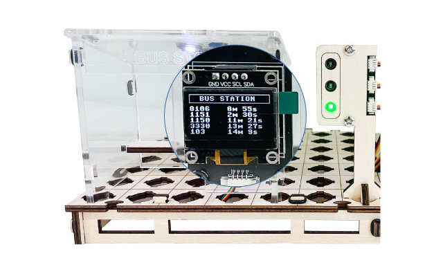 실제 저희 스마트 버스정류장 키트를 조립하면 출력되는 OLED 화면입니다.