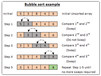 쉽게 말해 앞,뒤의 데이터 2개씩을 비교하여 더 높은 데이터를 우측으로 정렬하는 방식인데요.