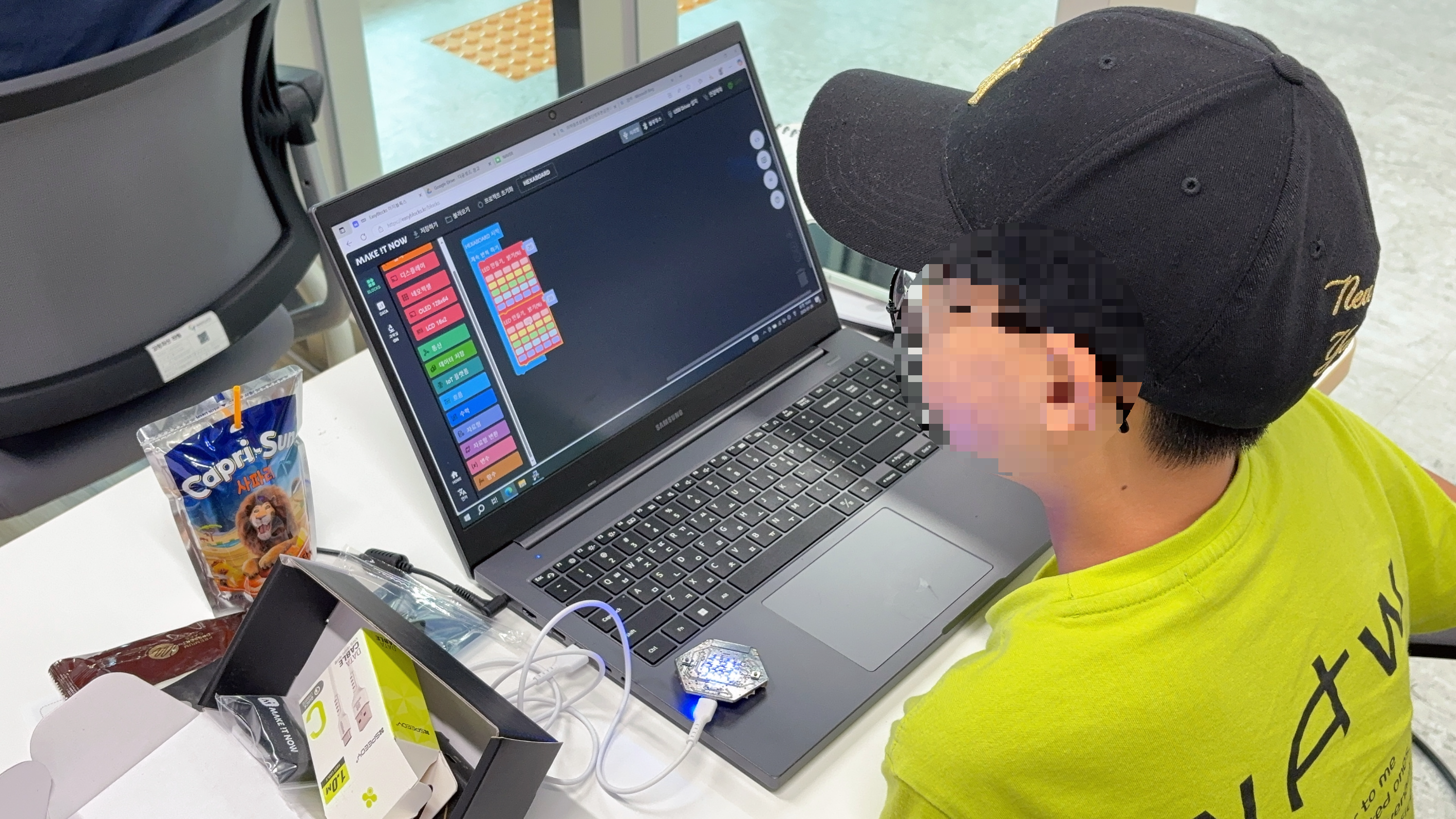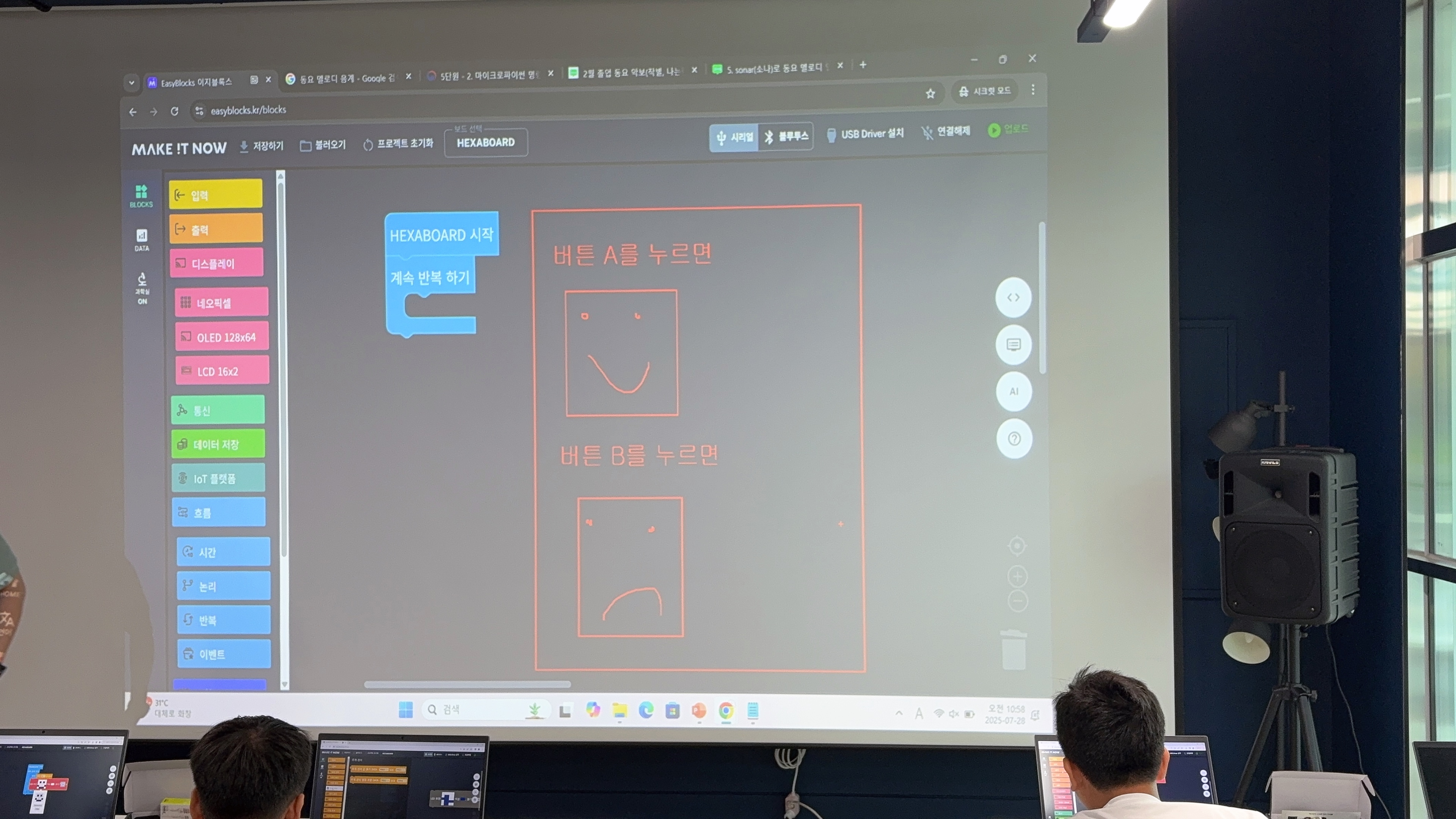 헥사보드, 이지블록스 프로그램 과 친해지도록 합니다.