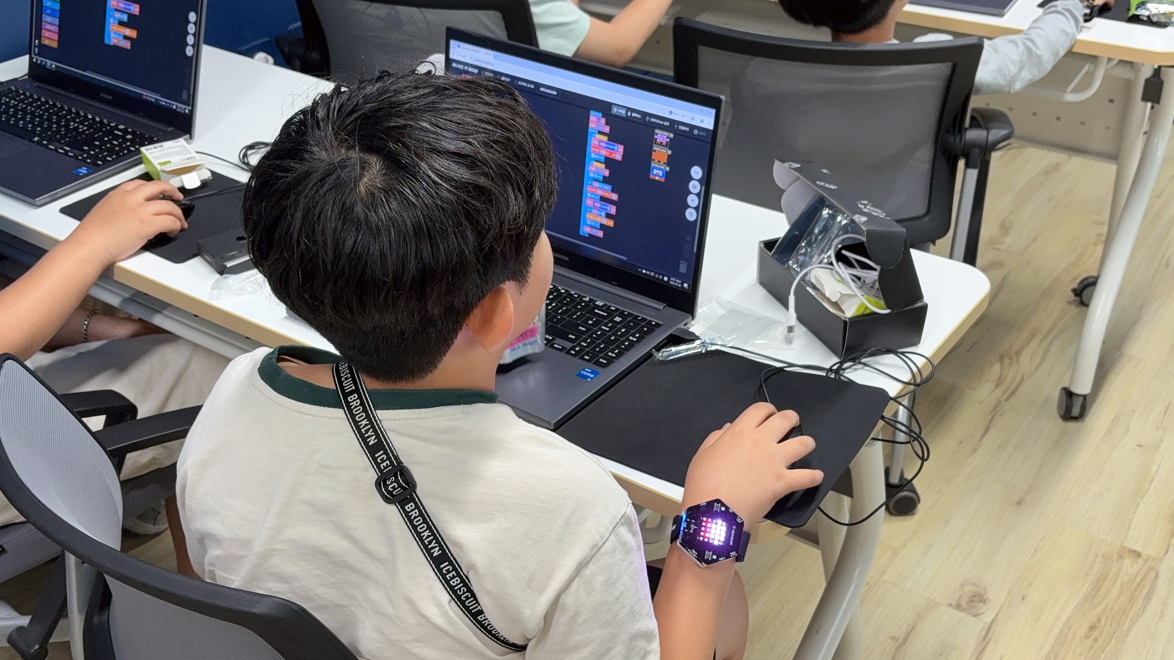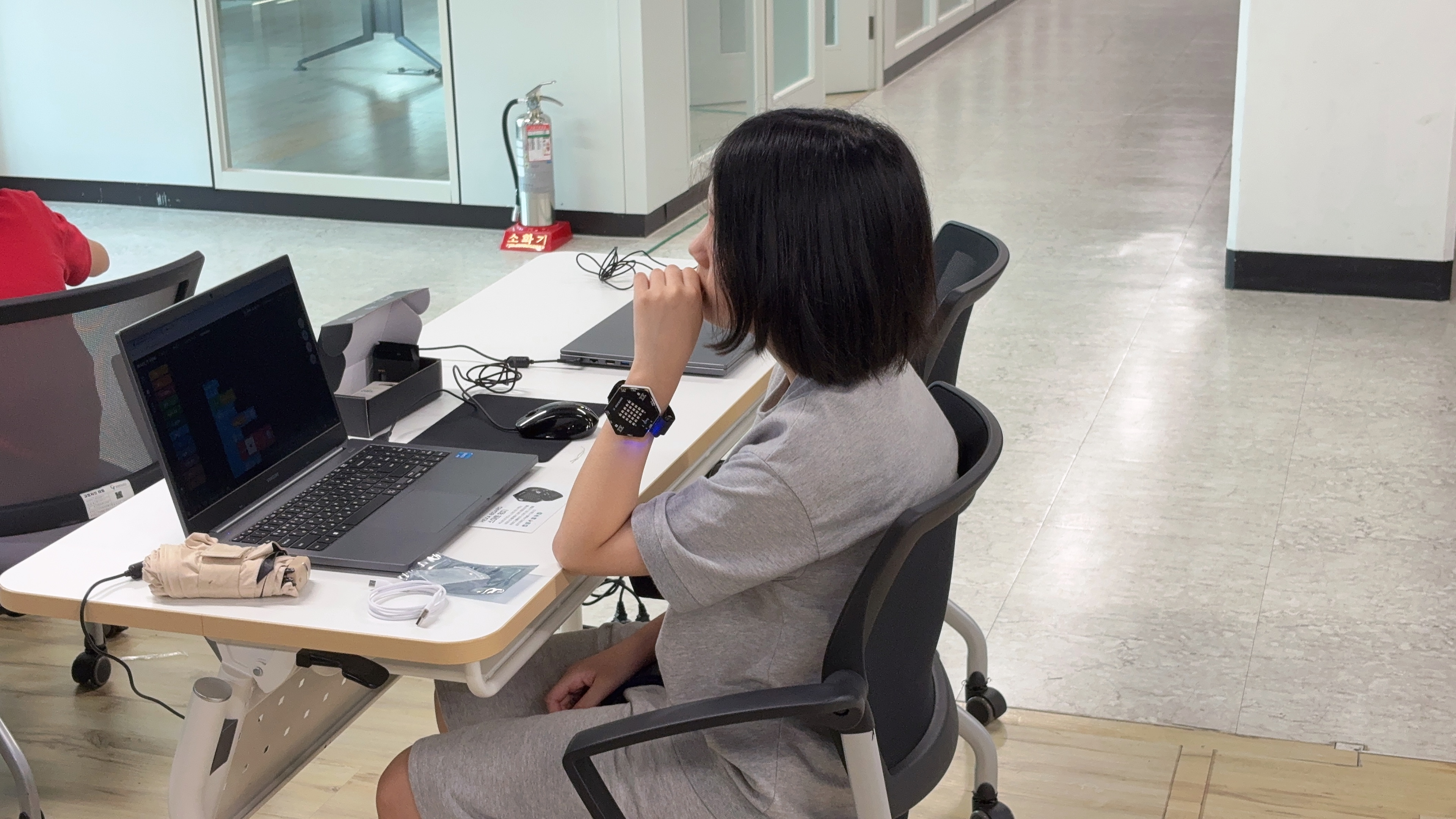 팔에 워치를 차고 코딩을 열심히 하는 모습이 너무 귀엽네요 :)