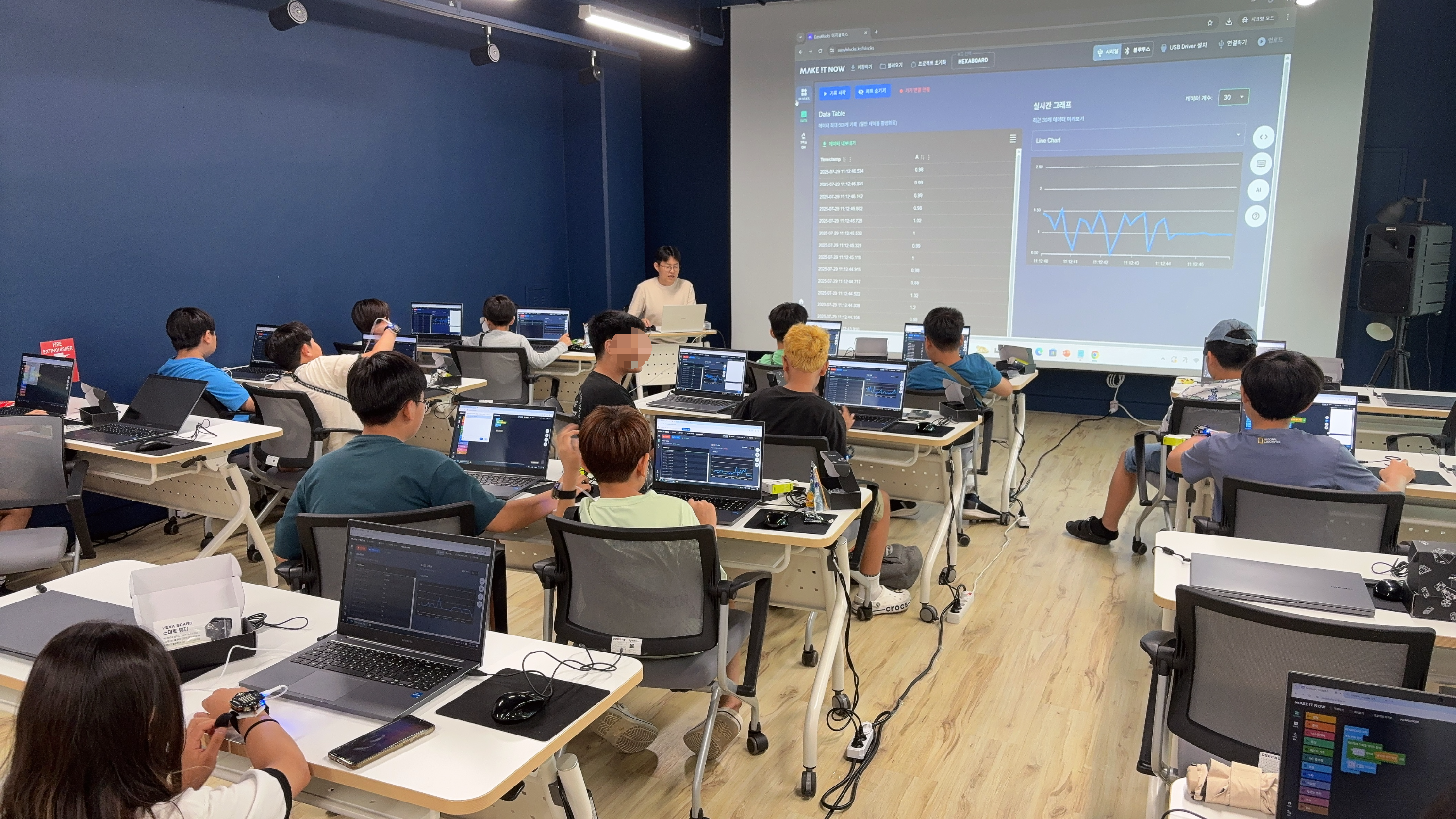 이지블록스에는 데이터센터가 있어 학생들이 실시간이으로 값을 측정하고