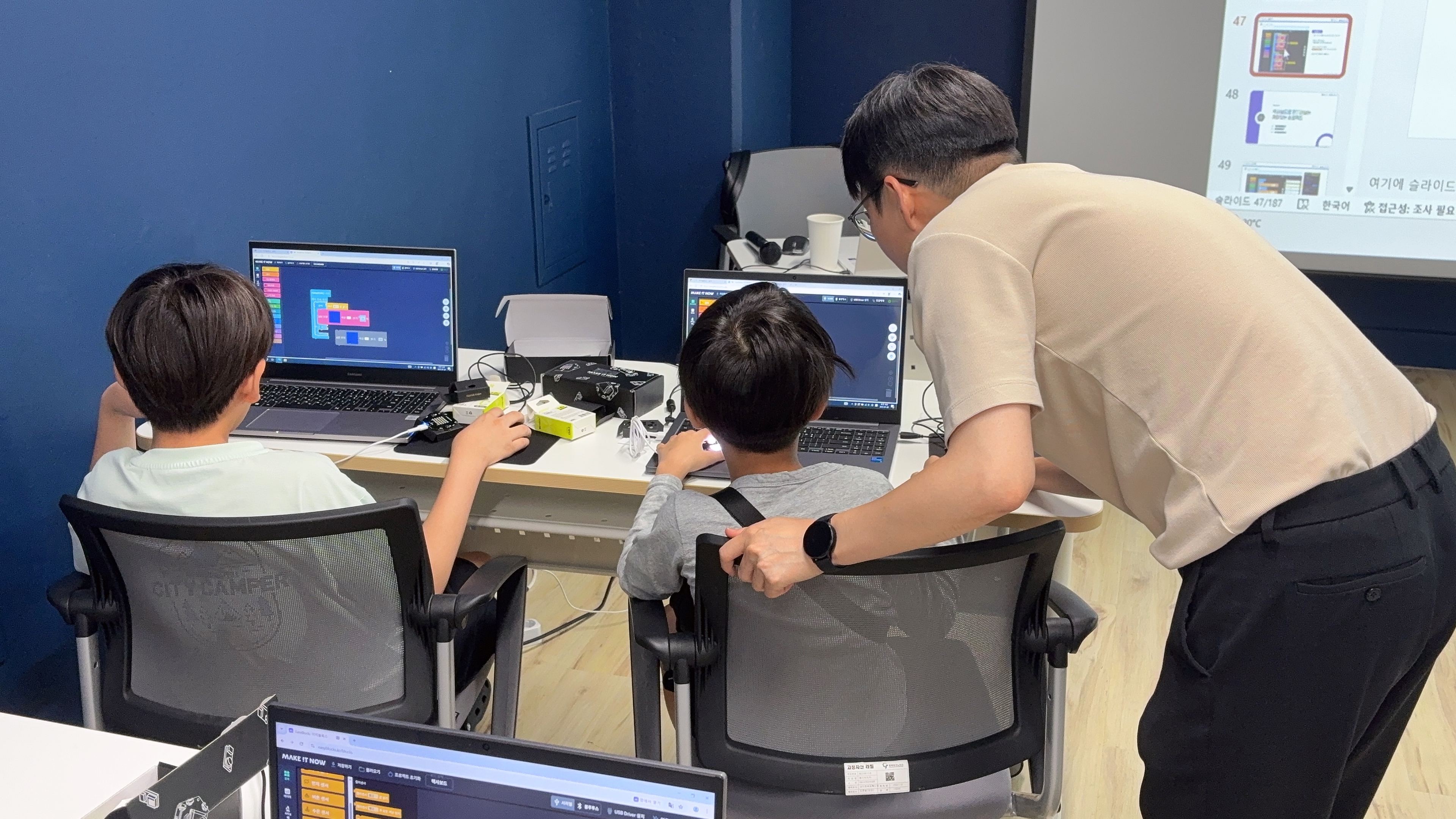 선생님 외에도 여러명의 보조강사 분들이 계시기 때문에 1:1로 케어해 줍니다.