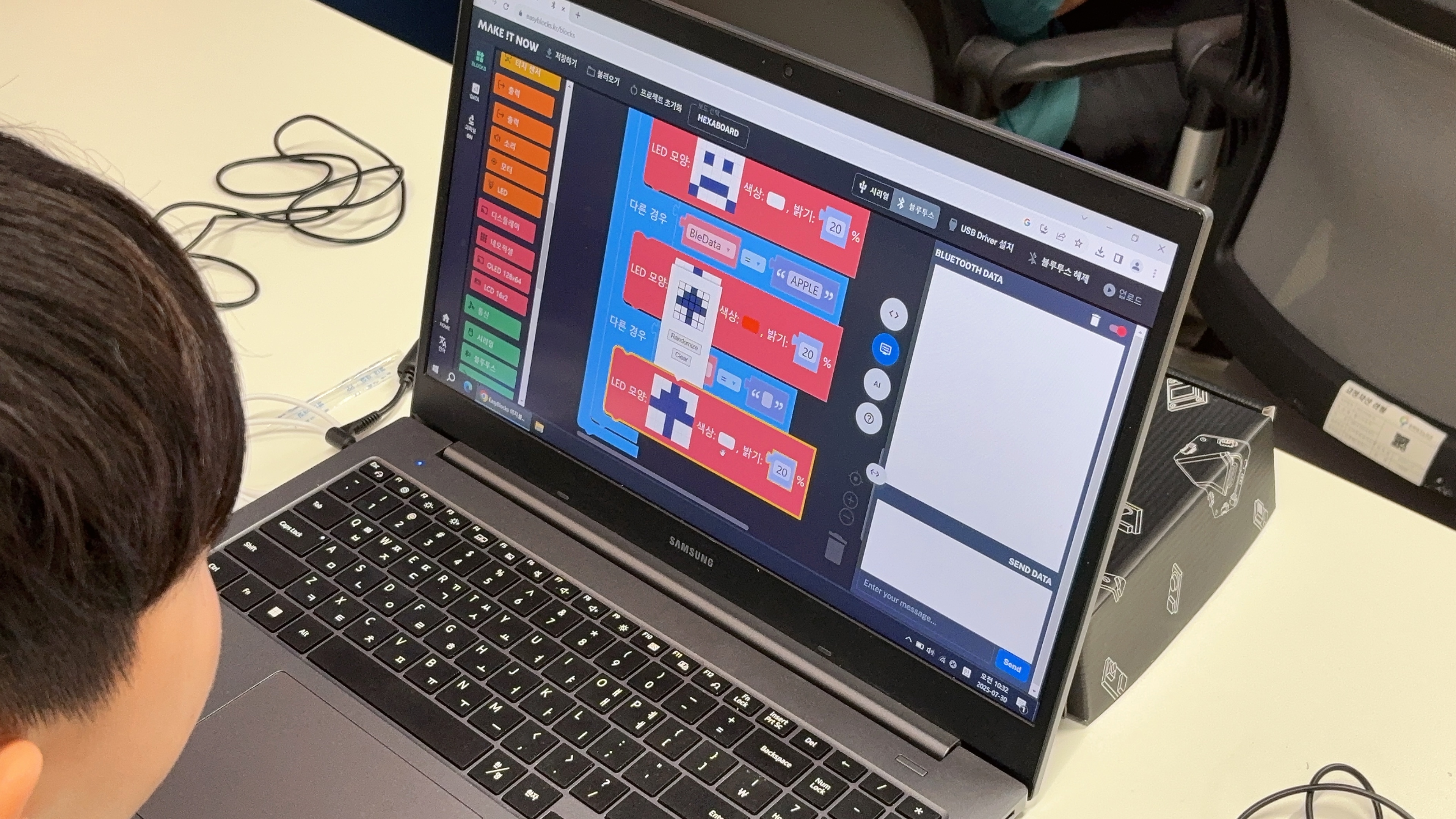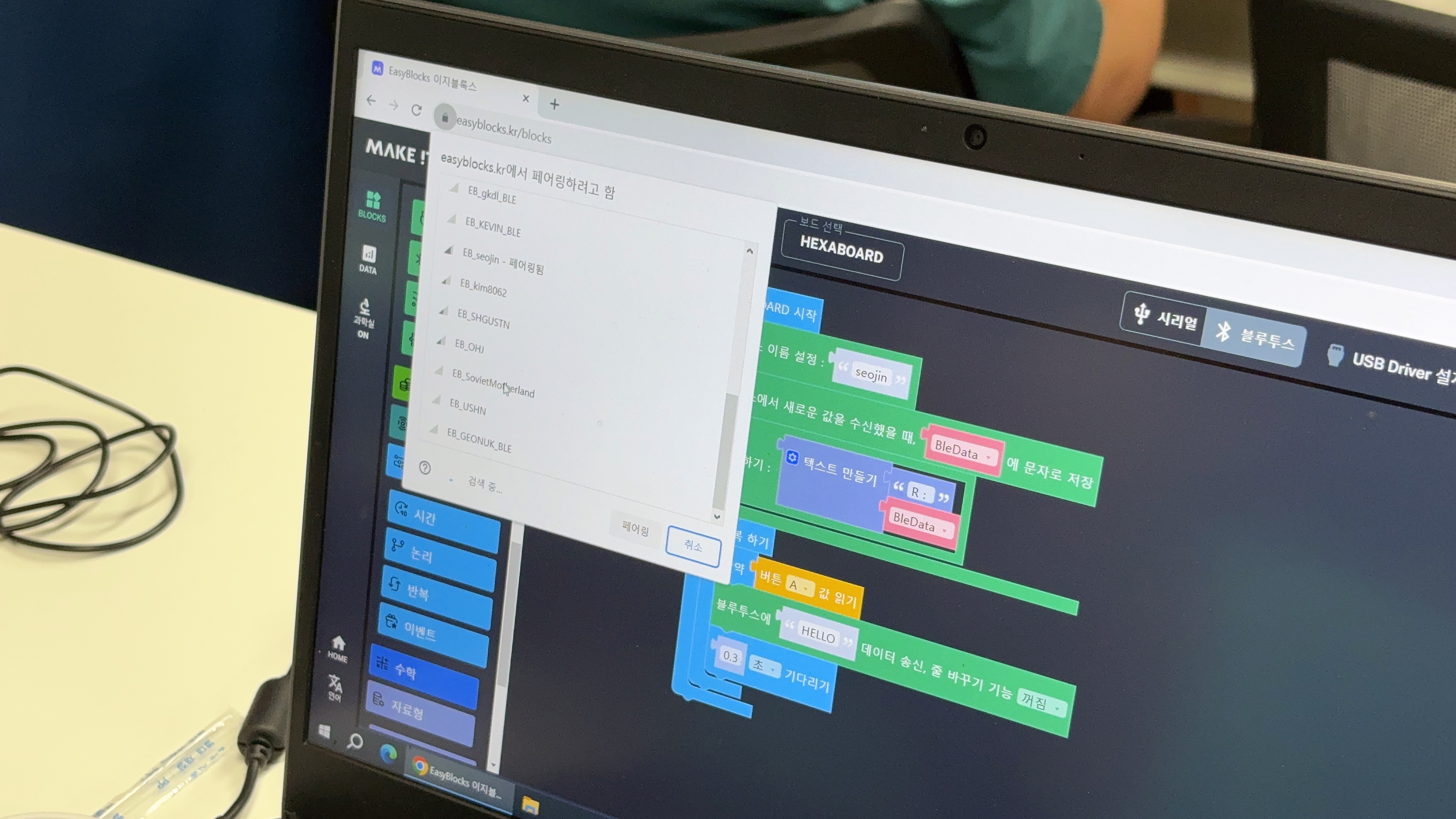 이러한 과정까지 모두 체험하기 이해 BLE로 데이터를 넘기는 부분도 필수로 교육이 됩니다.