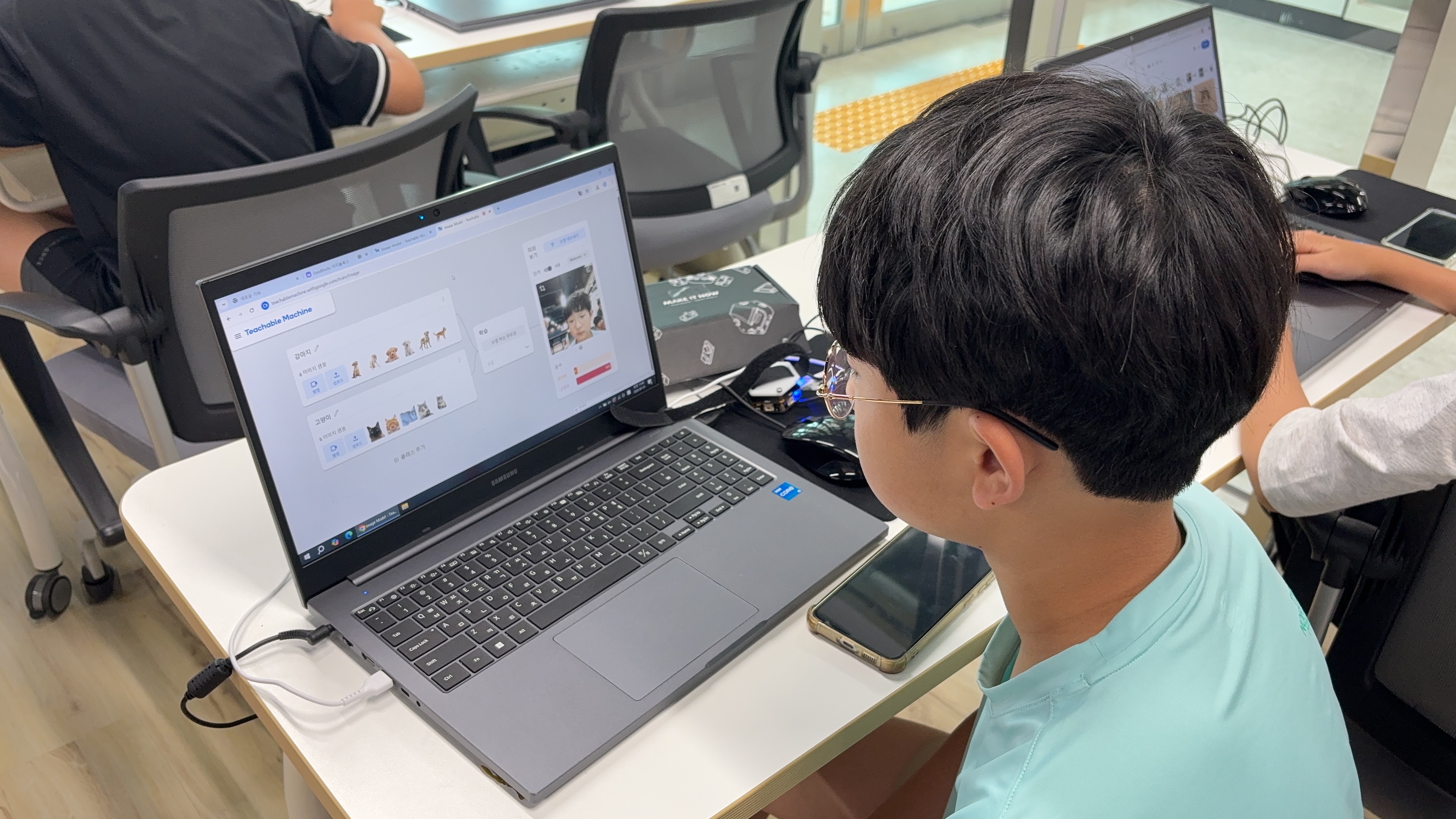 메이크잇나우 블록코딩 프로그램 이지블록스는 티쳐블머신과 매우 쉽게 연동할 수 있습니다.