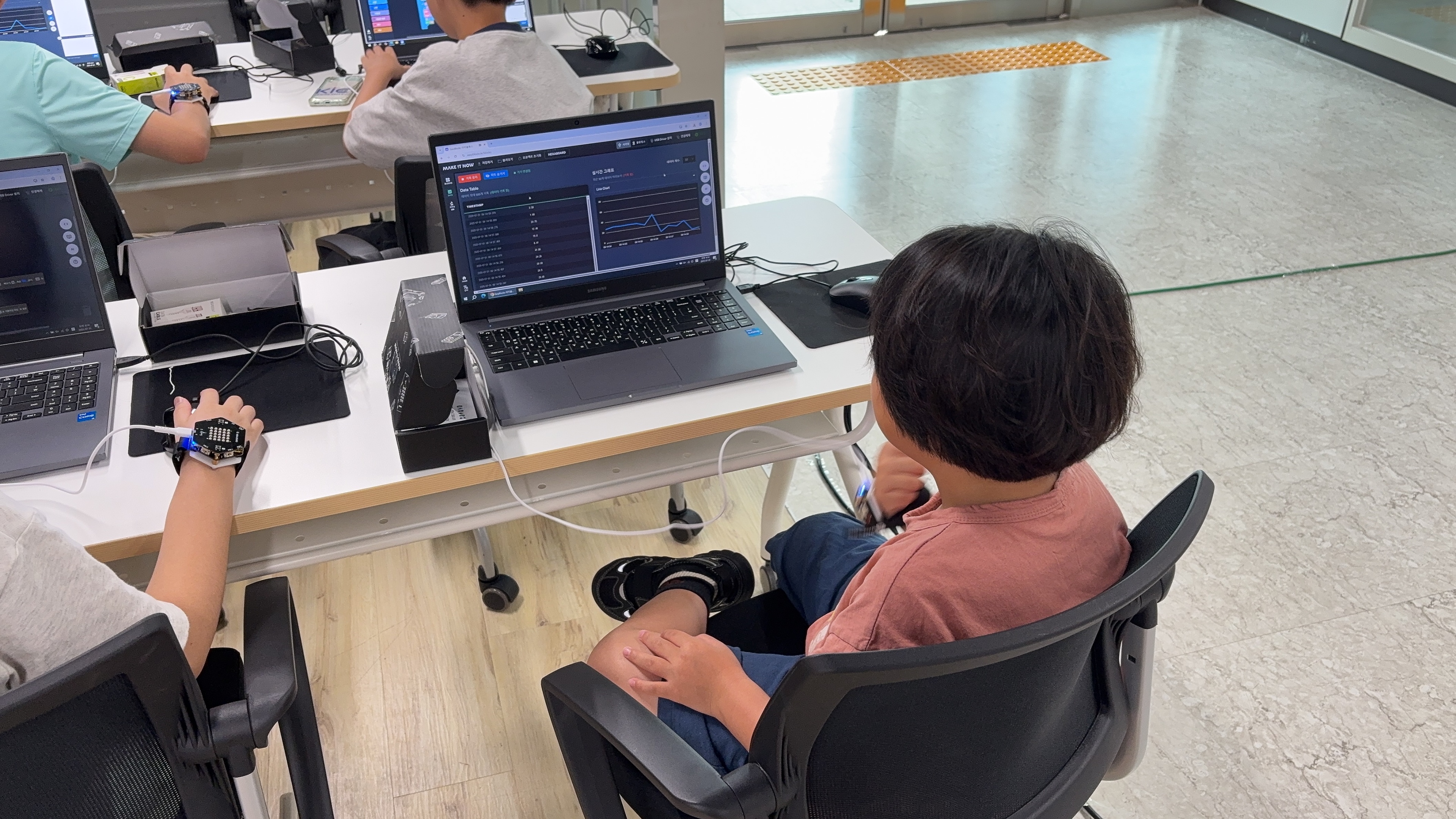 안녕하세요~ 메이크잇나우 입니다.헥사보드 스마트워치로 운동데이터 측정하기 3일차 입니다.이번 시간에는 헥사보드를 활용하여 웨어러블 디바이스를 만들고 이를 통해 윗몸일으키기를 측정