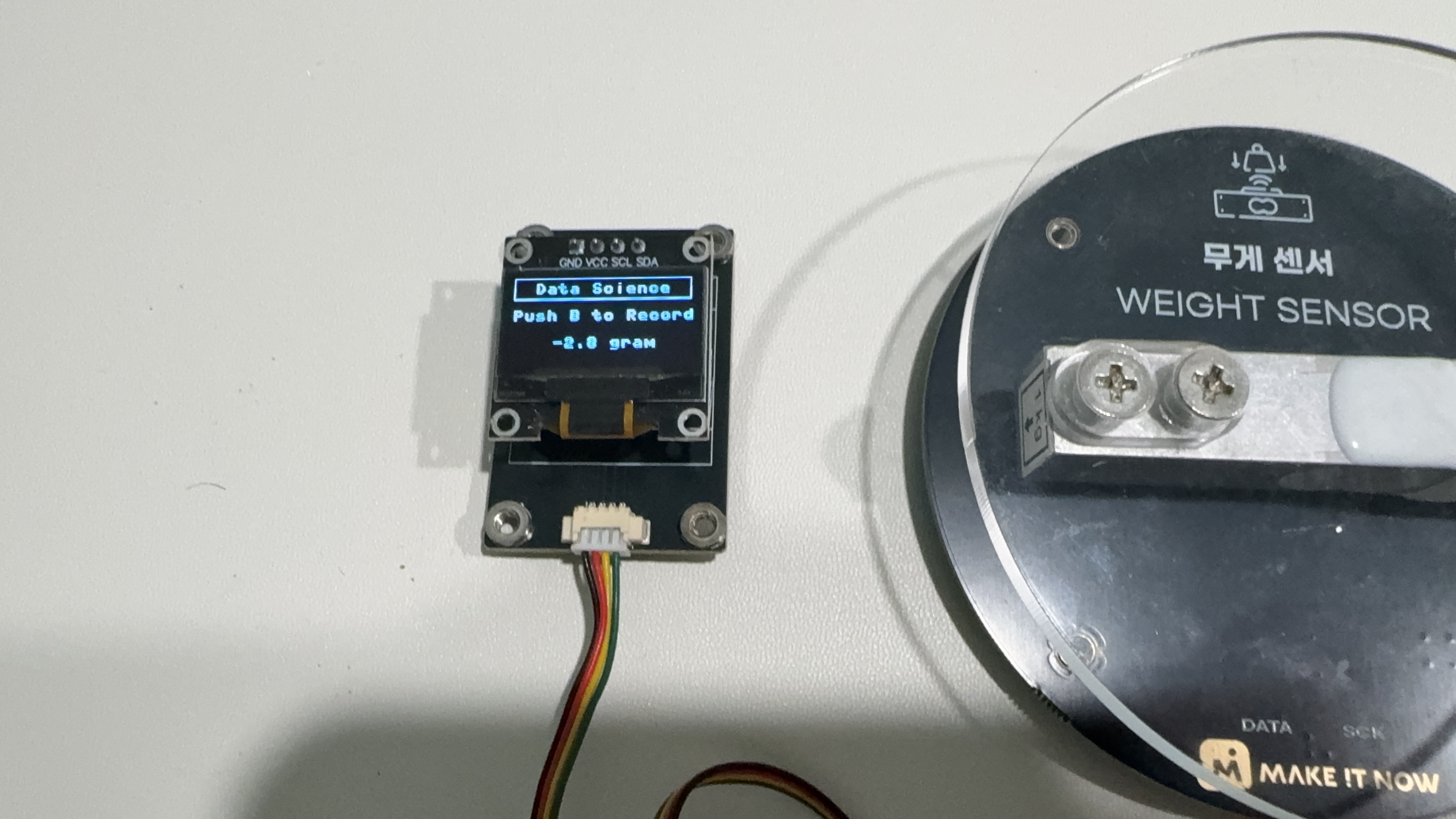실험장치 : 헥사보드, 무게센서, 디스플레이(OLED), 무게를 측정할 물건