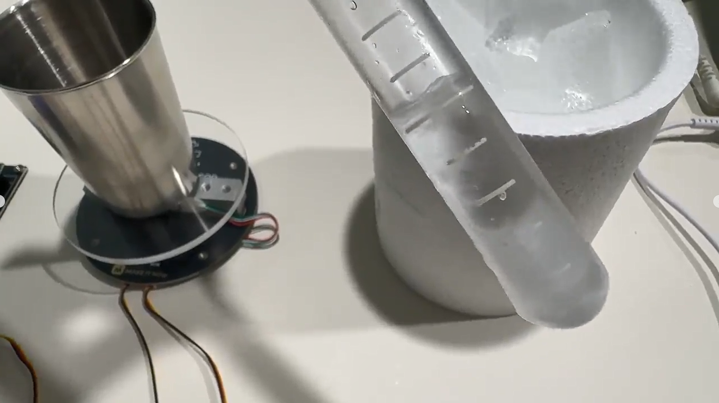 간단하게 실험을 하다보니, 실린더가 기울어지는 것 때문에 컵을 넣고 영점을 맞춘 후,