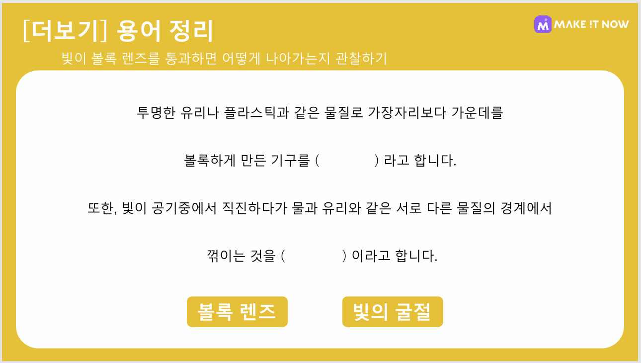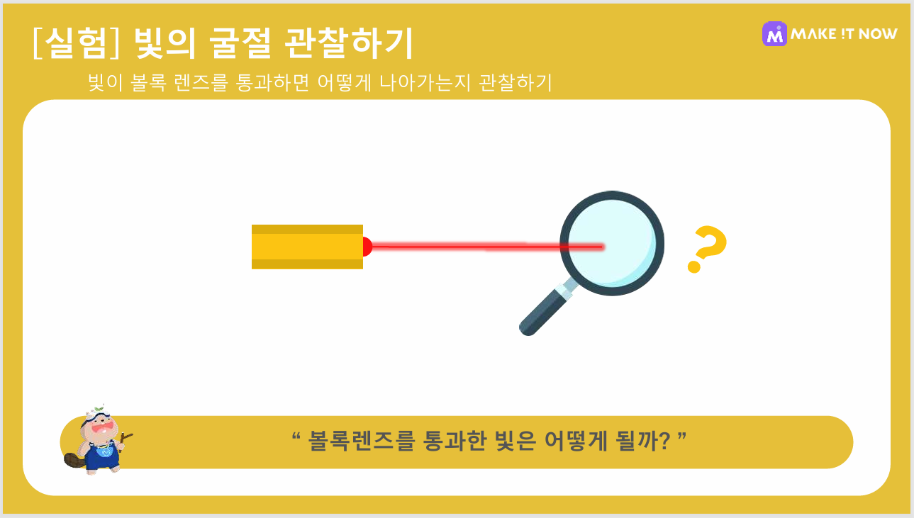 오목렌즈, 거울, 프리즘, 유리, 물 등 다양한 환경에서 추가적인 실험이 가능합니다 :)