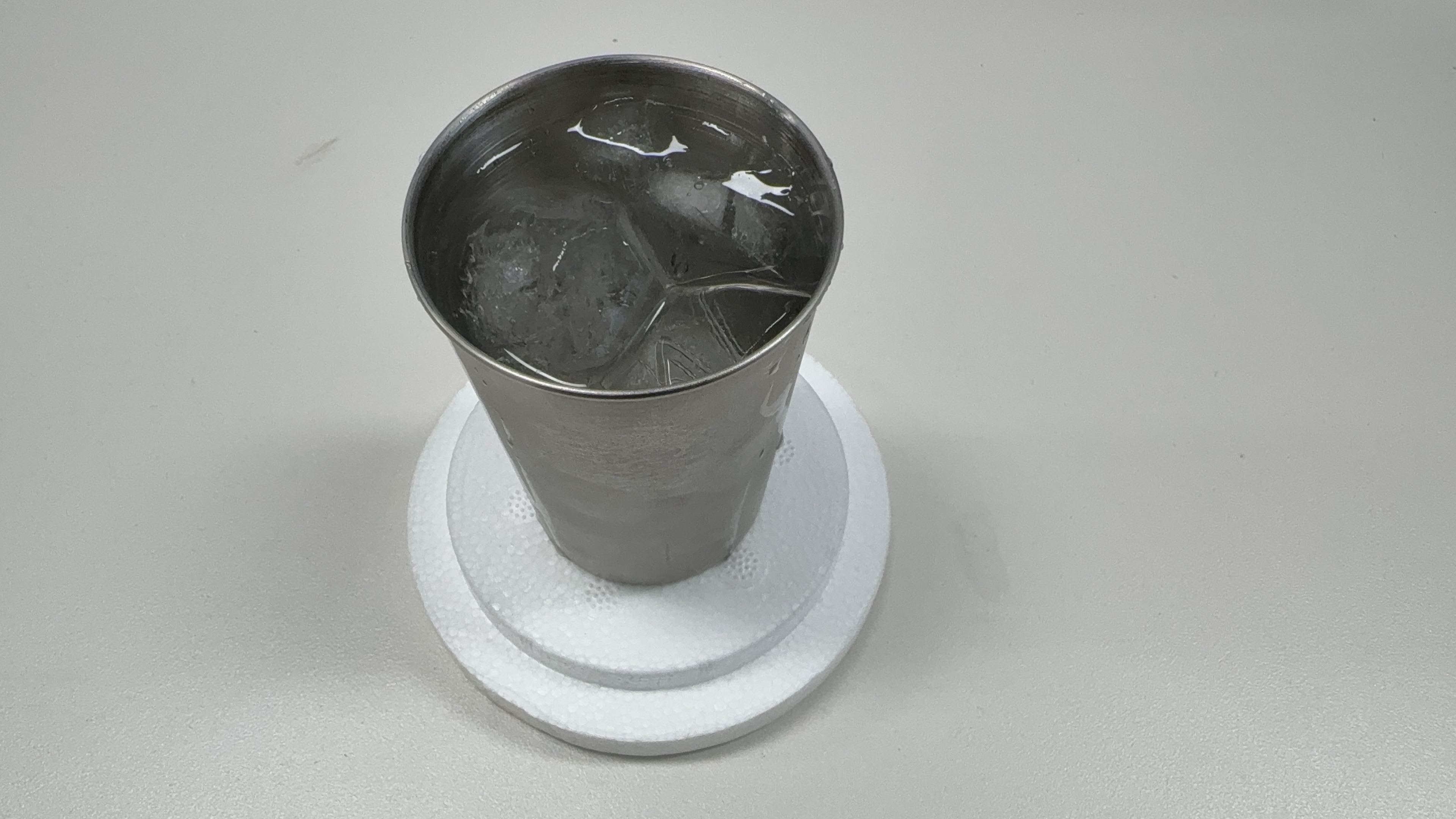 준비물 : 스테인리스 컵, 스타이로폼 용기, 물, 얼음