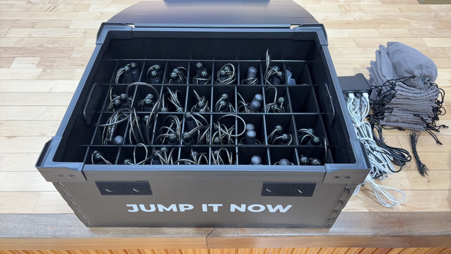 학생들의 줄넘기가 모두 켜지면, 각 줄넘기 마다 번호가 나오고