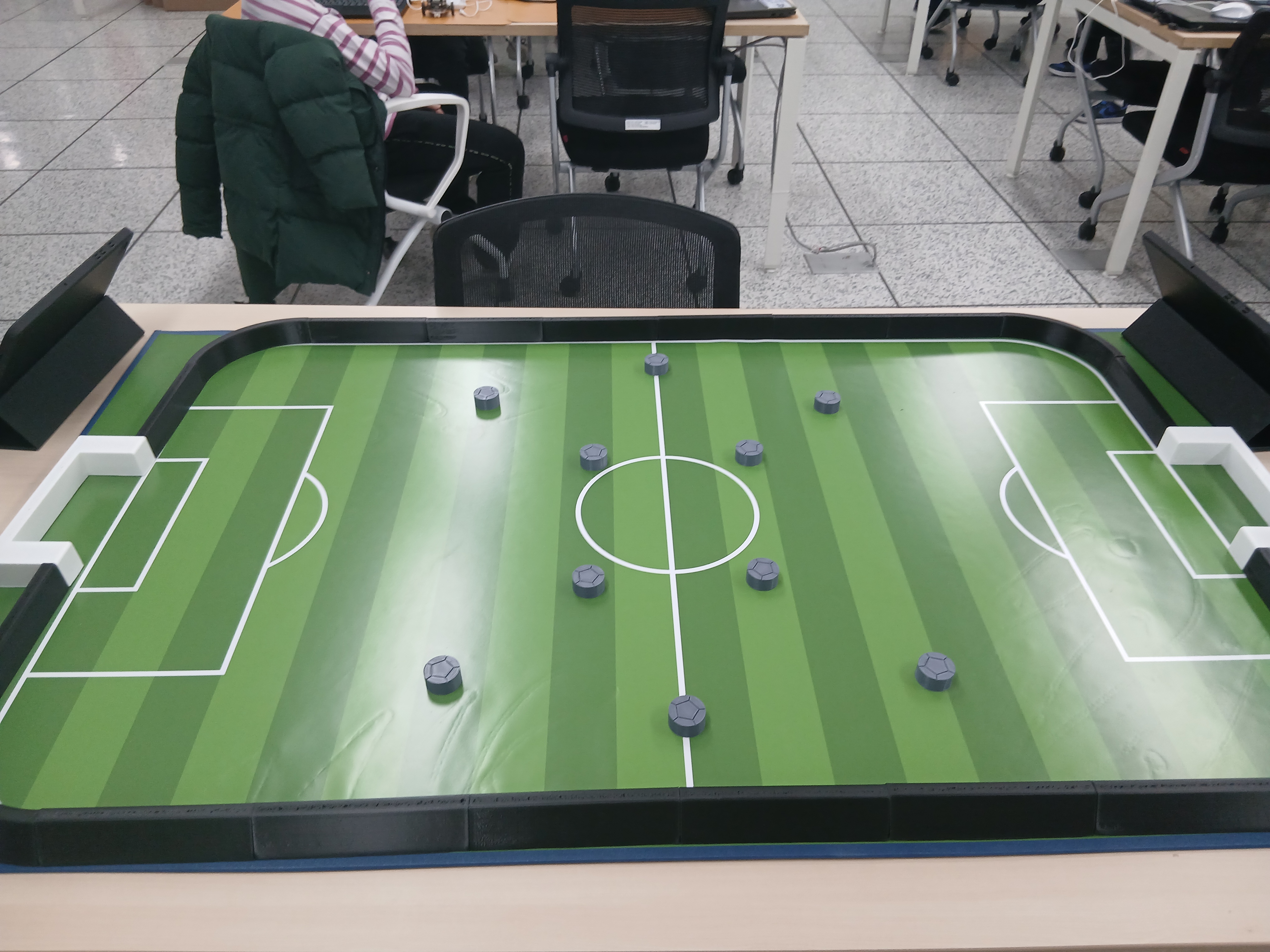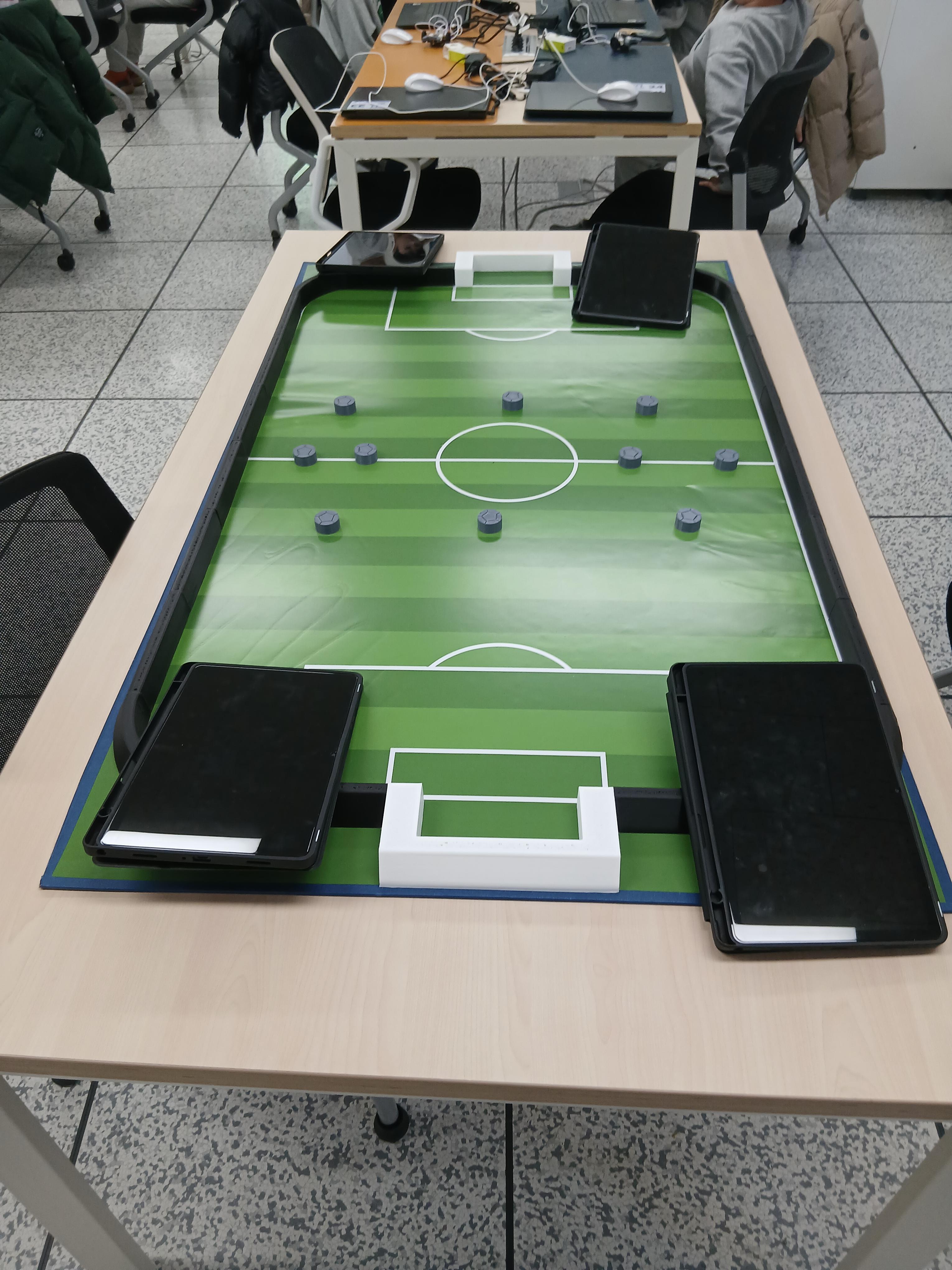 그러면 테블릿을 통해 로봇 축구를 할 수 있죠.