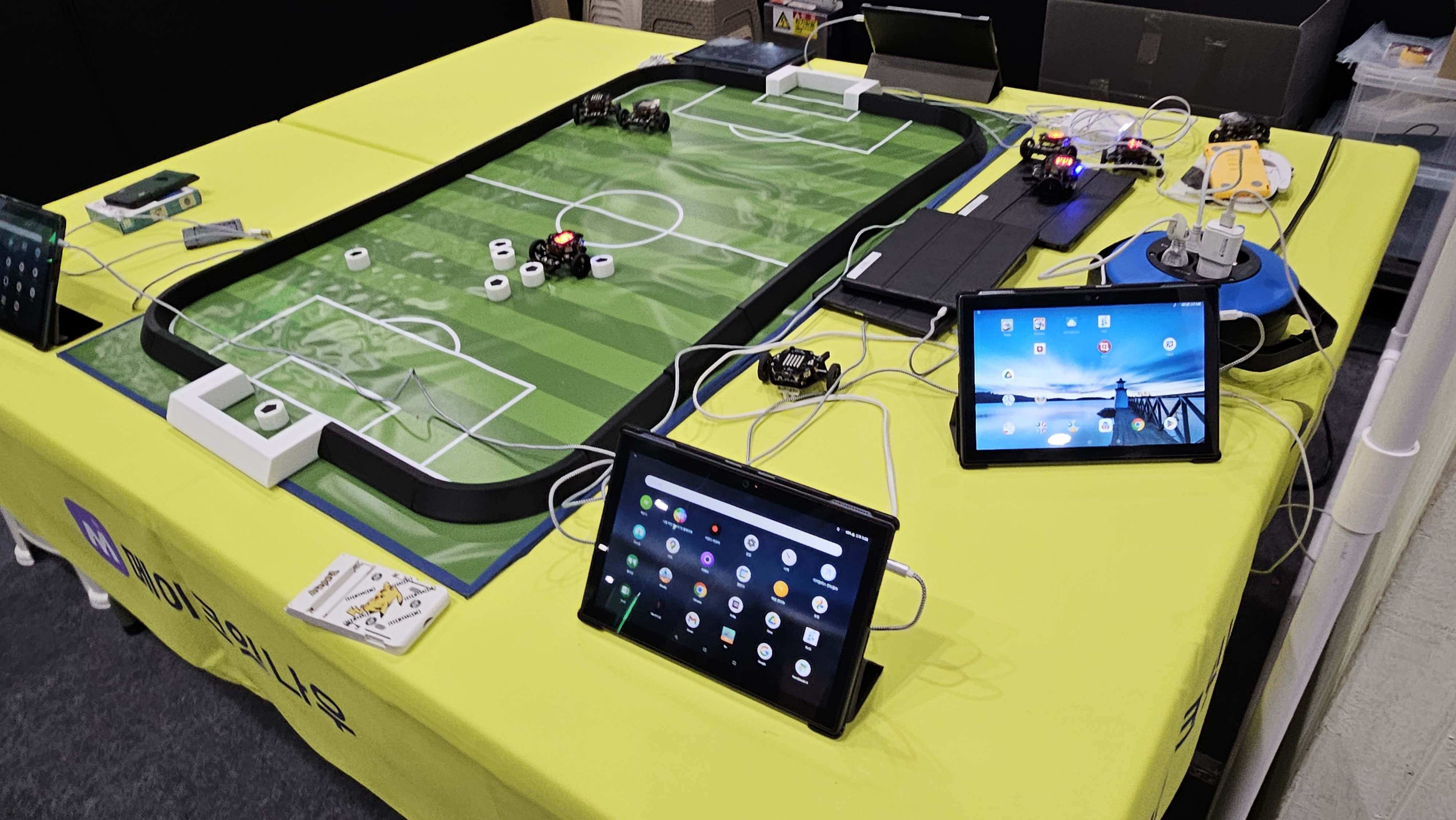로봇축구는 저희 헥사 스마트 모빌리티를 블루투스를 활용해 축구게임을 진행하는데요.
