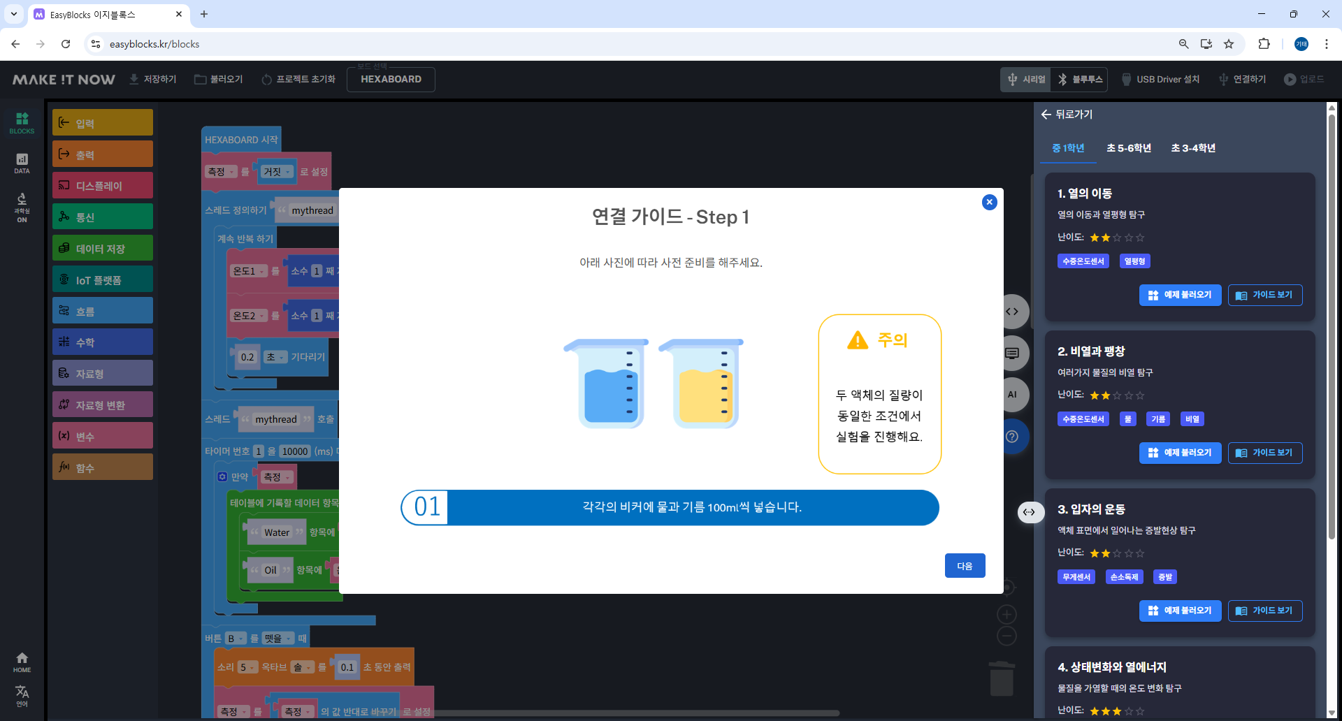 저희 이지블록스 내에는 실험을 간단하게 진행할 수 있도록