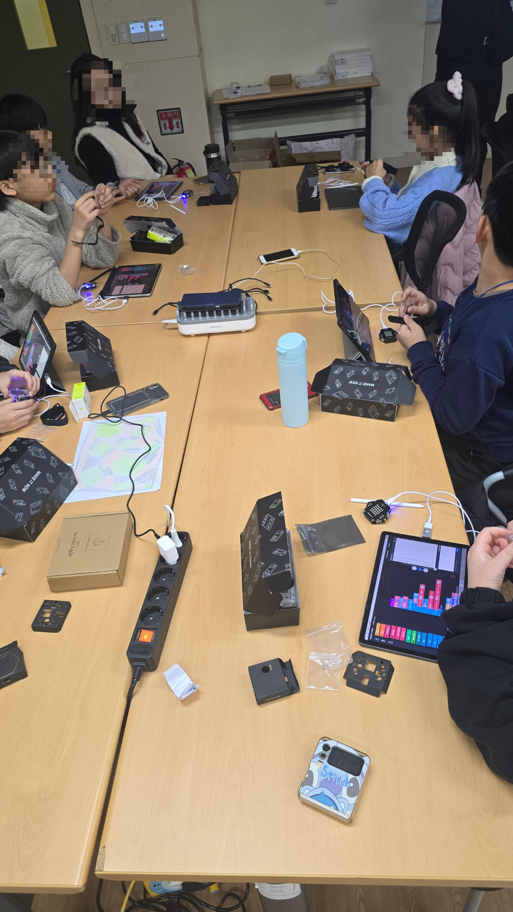 첫날은 아이들이 익숙하지 않은 코딩과 센서에 대해 배우고 익히는 시간이었어요.
