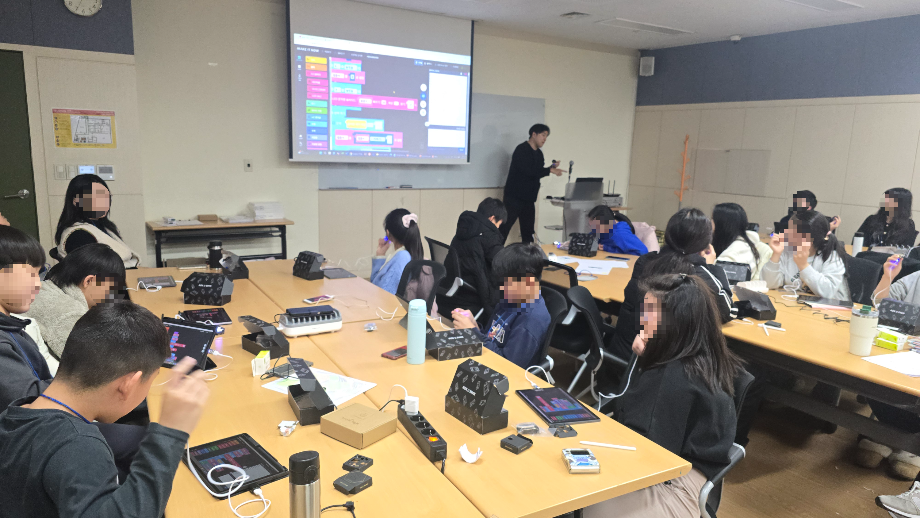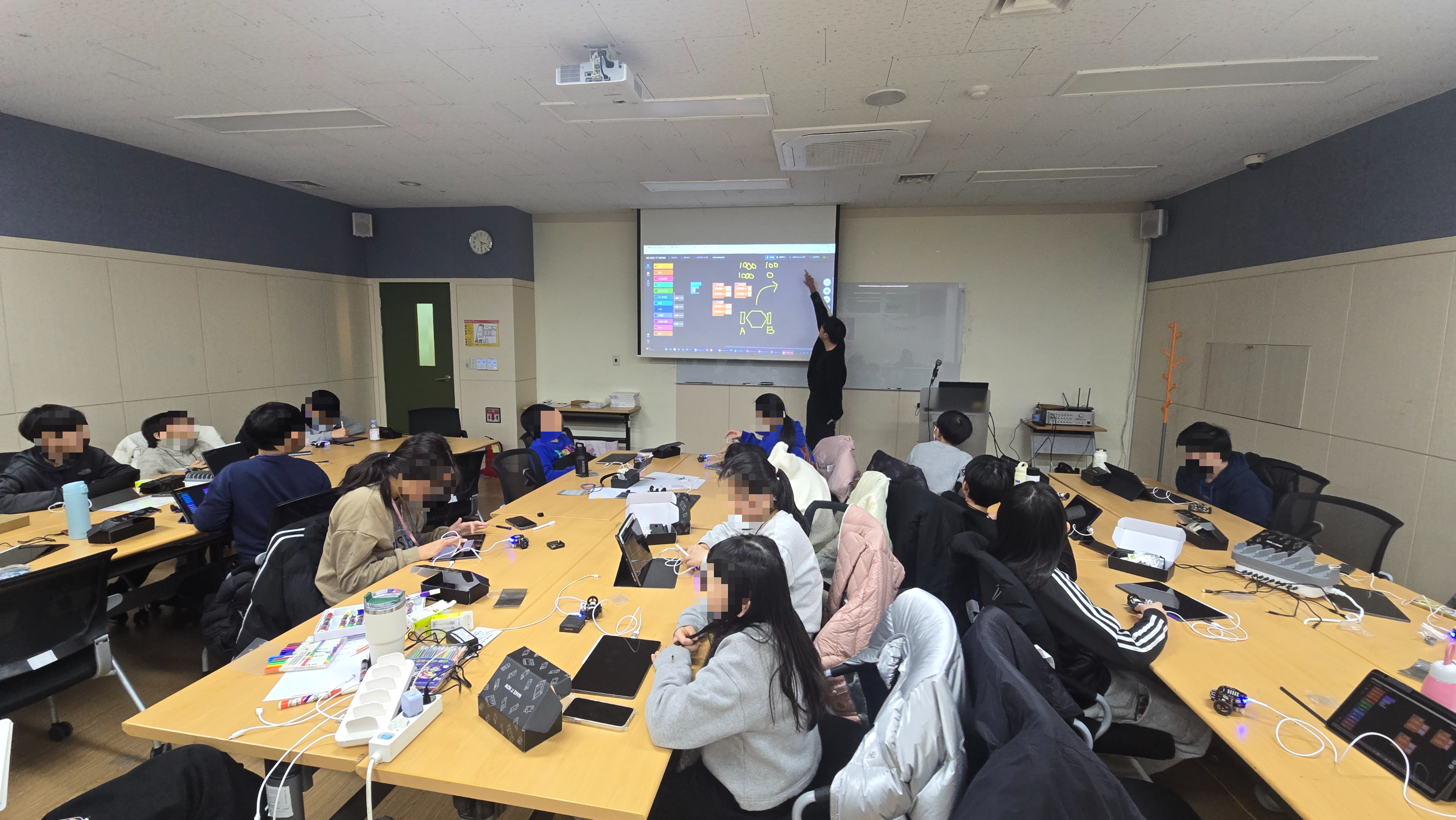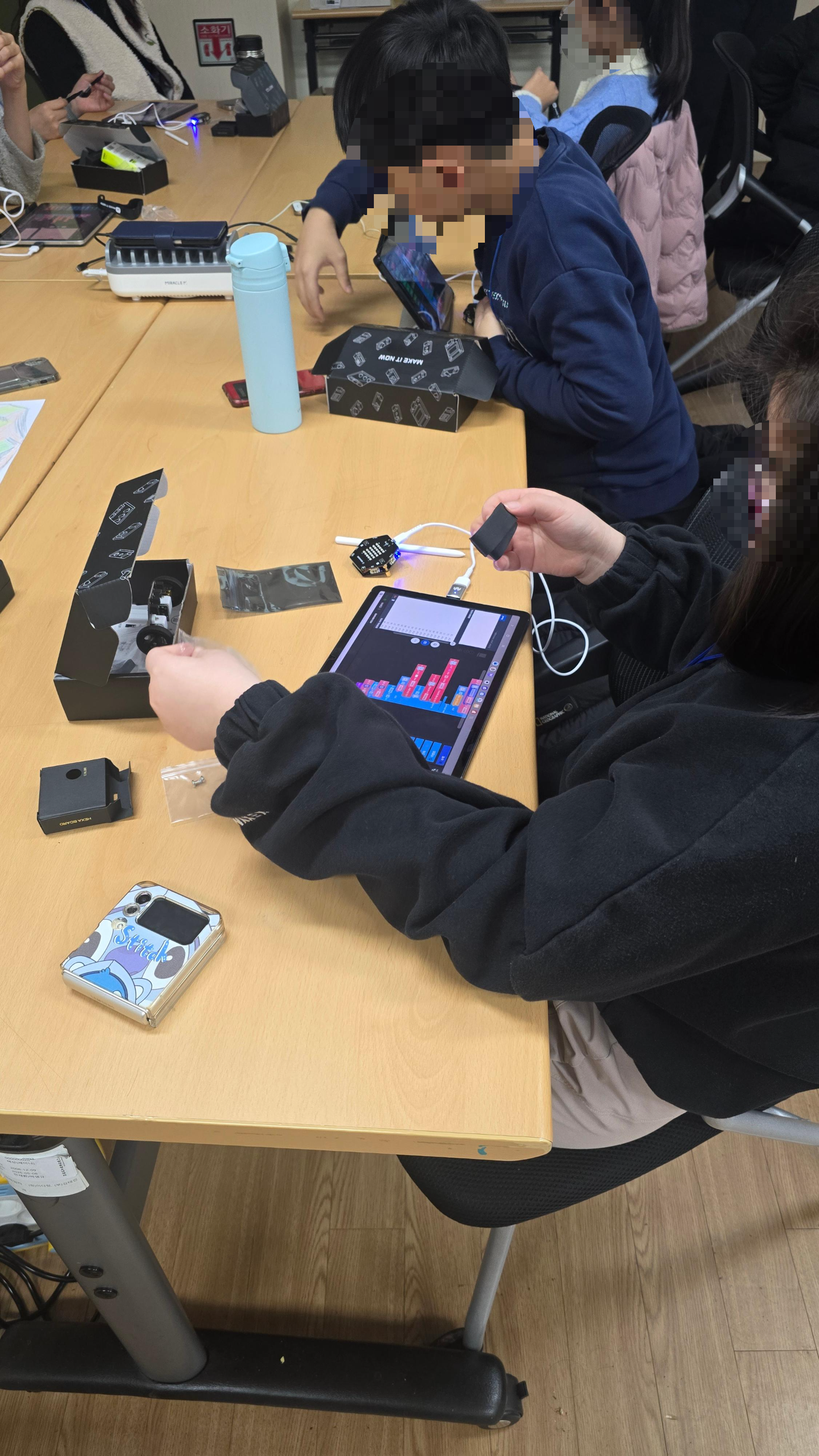 코딩이 처음인 친구들을 위해 블록코딩 수업이 진행되었고, 모두 태블릿을 이용해서 수업이 진행되었습니다.