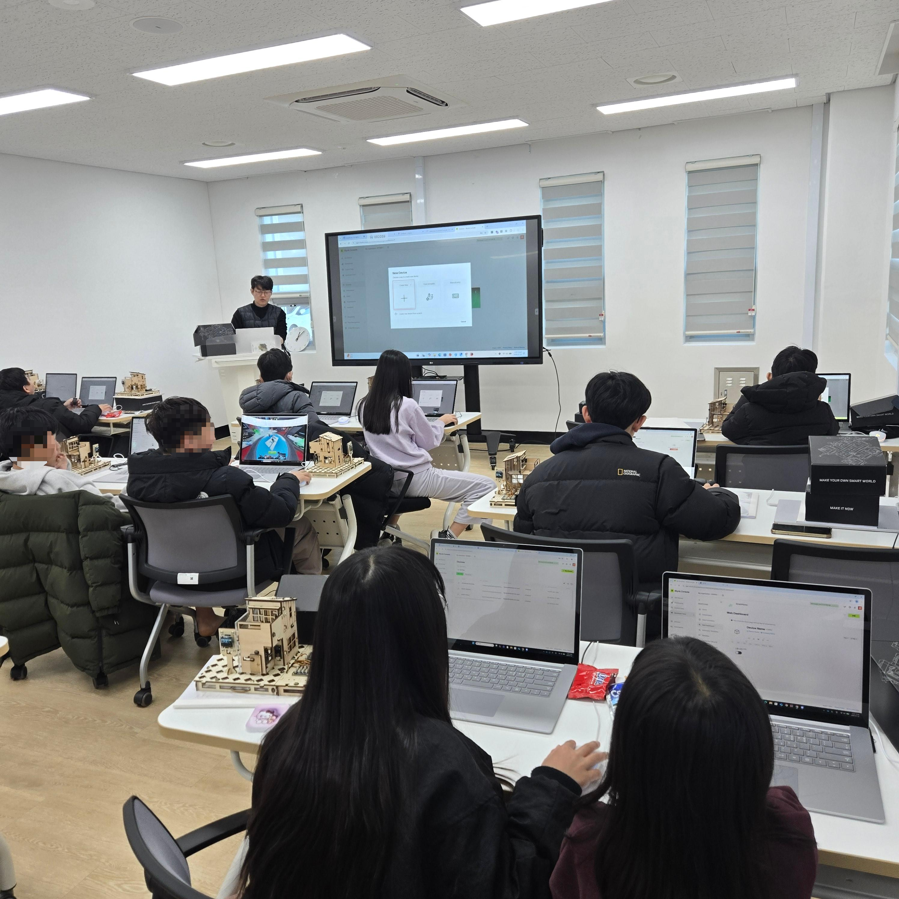 학생들 코딩 장면에 보면 WiFi 와 Blynk 인증번호를 넣는 부분이 있는데, 이게 시작부예요.