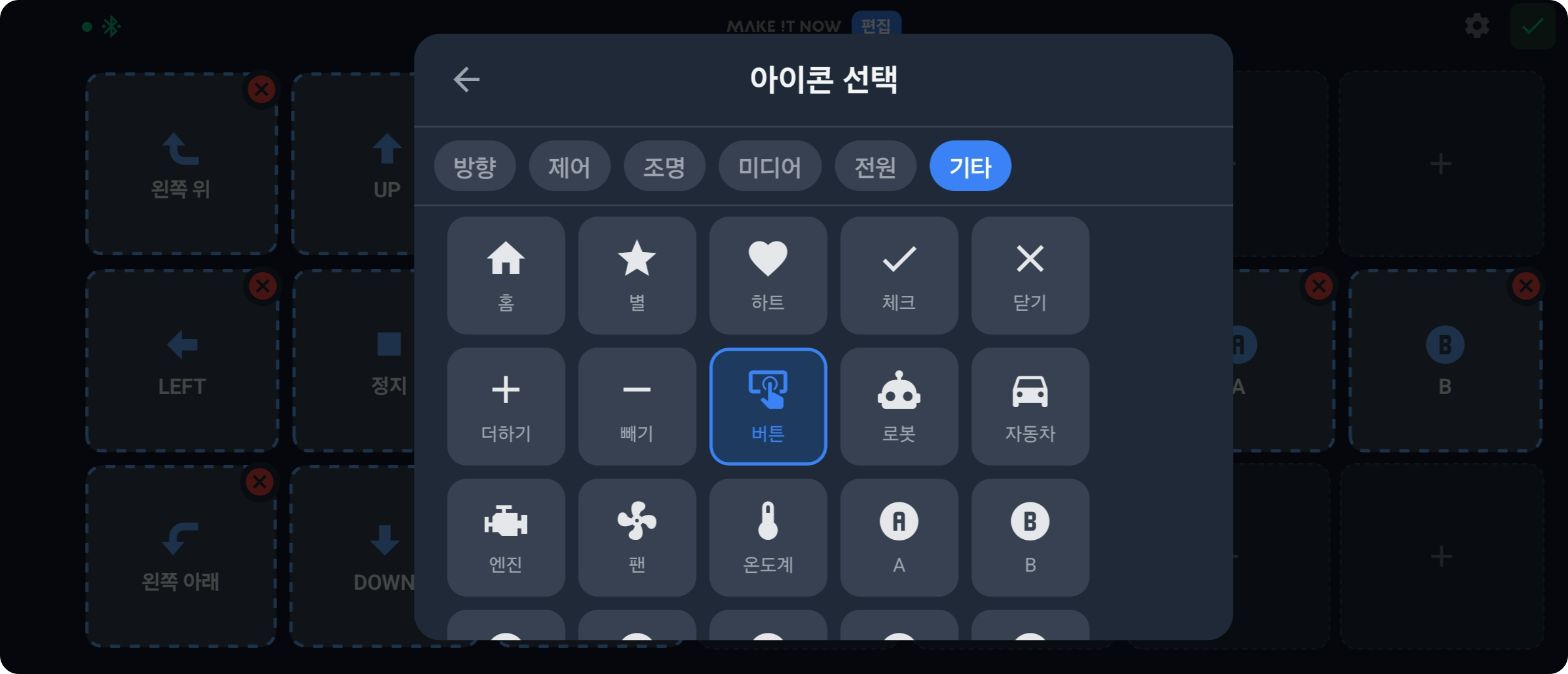 방향, 제어, 조명 등 여러 아이콘이 준비되어 있어 사용자가 원하는 방식으로 컨트롤러를 쉽게 구성할 수 있습니다.