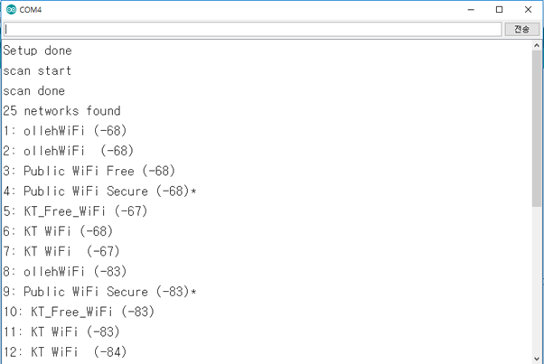 말 그대로 주변에 어떠한 WiFi가 있는지 검색하고 그 WiFi에 비밀번호가 걸려있는가를 시리얼 모니터에 출력해 보겠습니다.